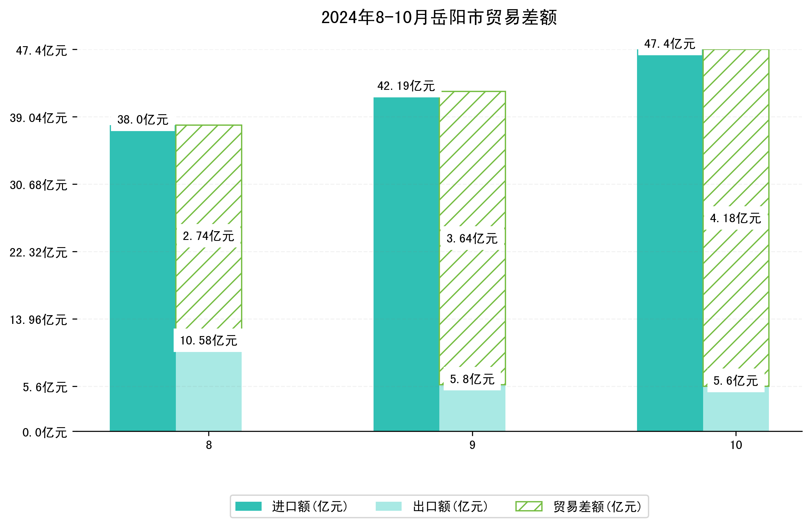 2024年10月岳阳市进出口总额及进出口差额统计分析