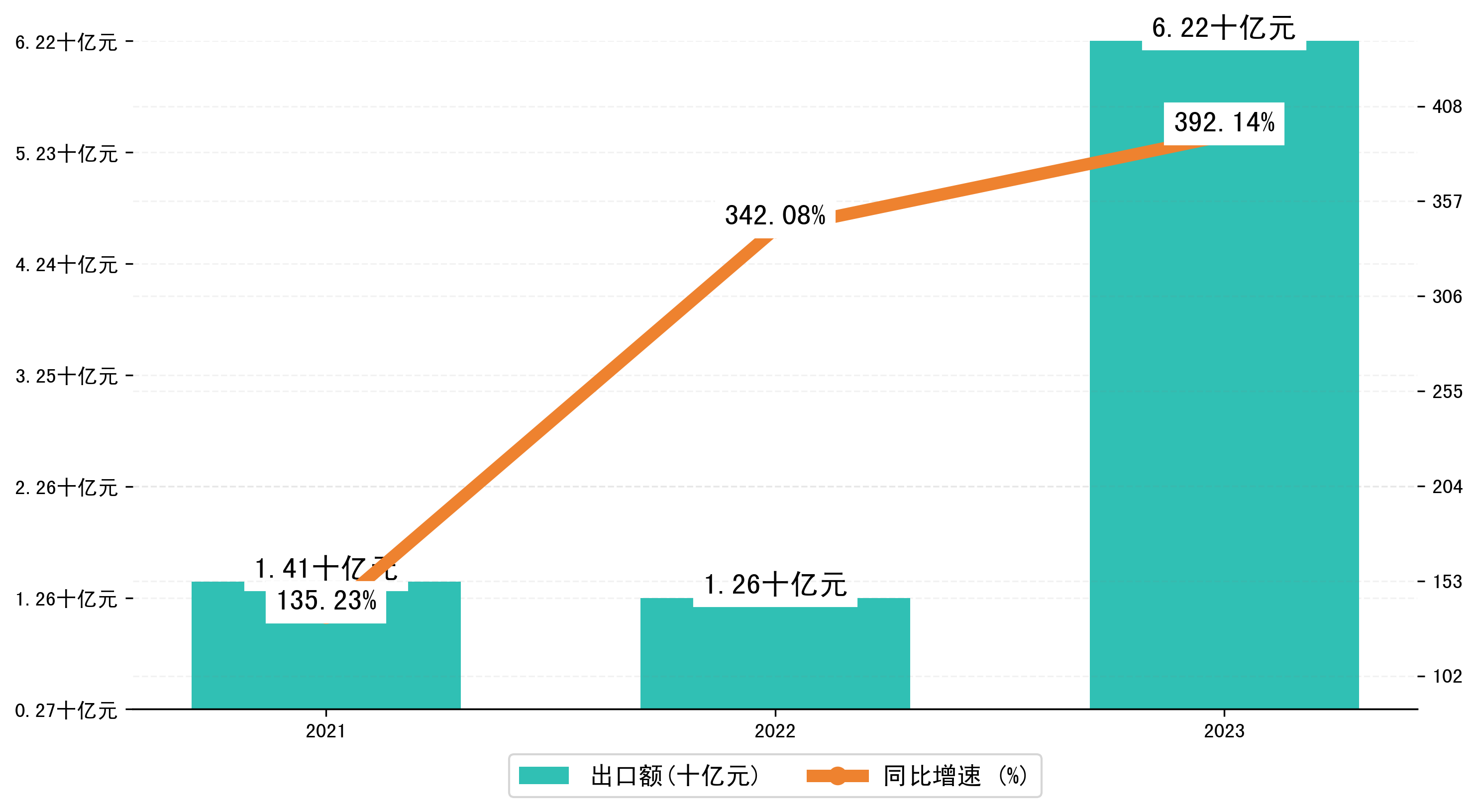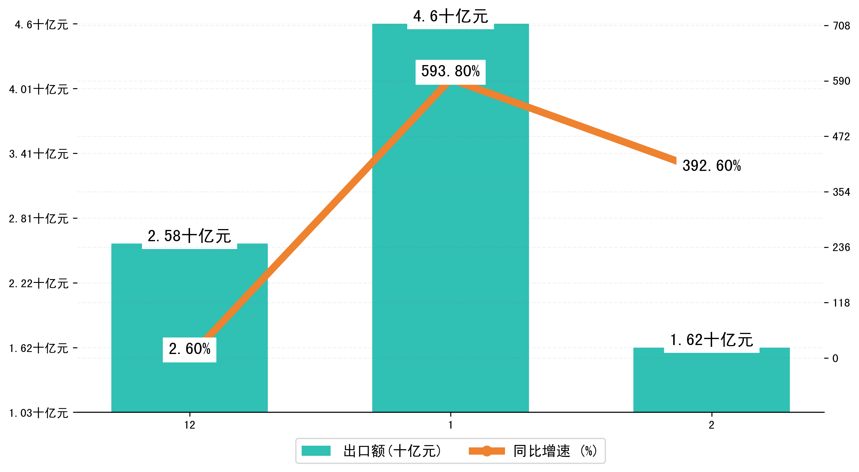 以美元计,2023年1-2月岳阳市出口额为8,9916.7406万美元,相比上年同期增加了7,0080.5558万美元,同比增加353.70%。