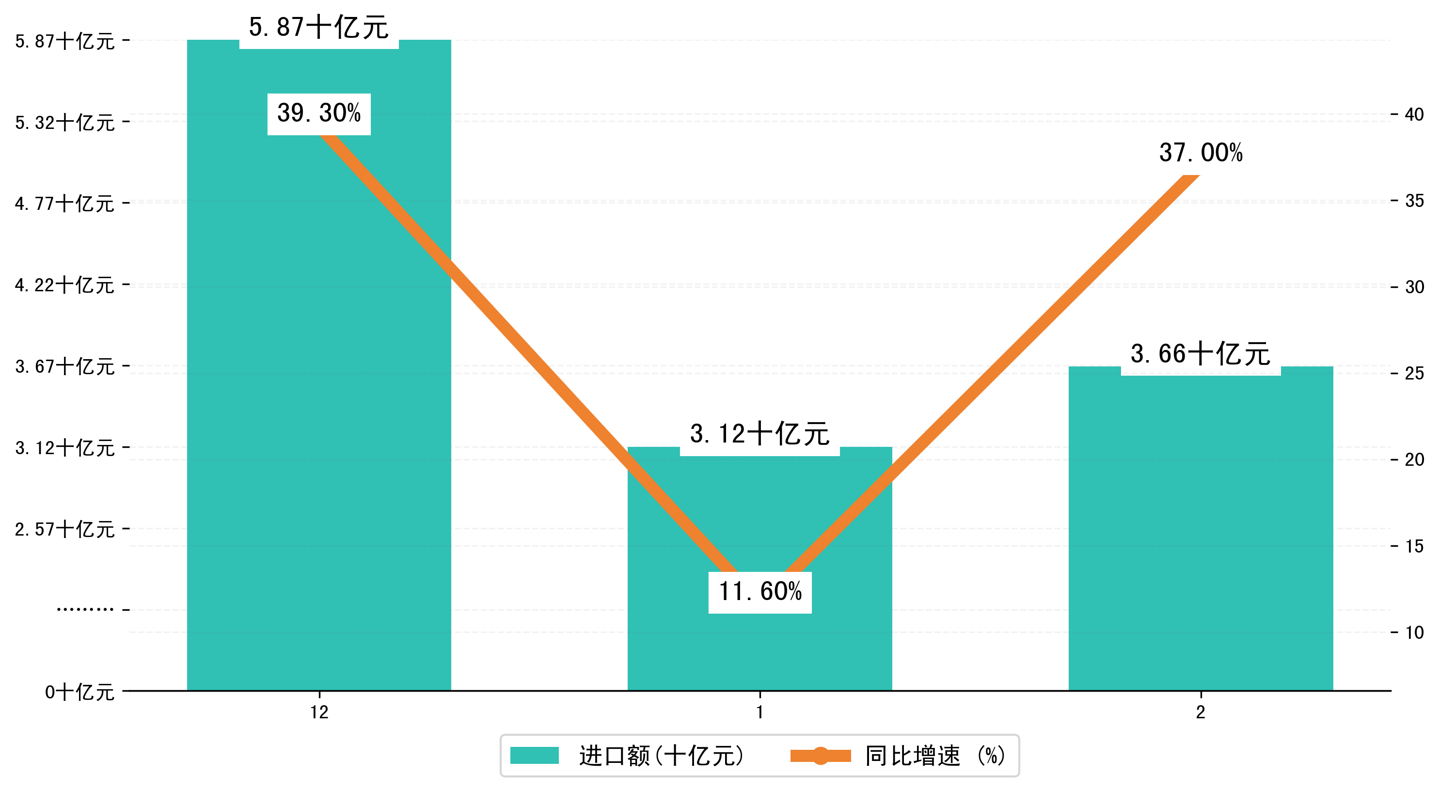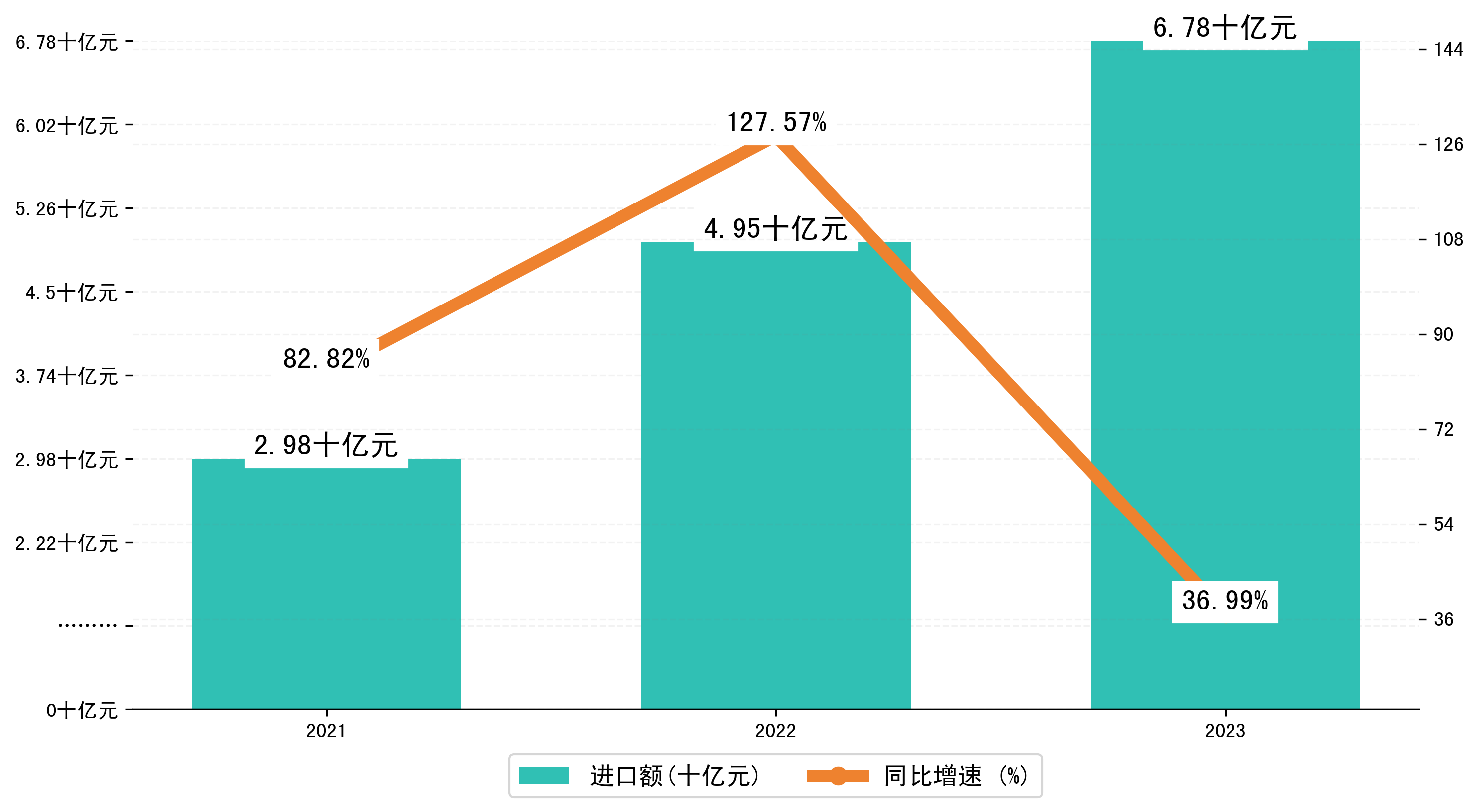 以人民币计,2023年1-2月岳阳市进口额为67,8313.2434万元,相比上年同期增加了18,3165.8259万元,同比增加了37.00%。