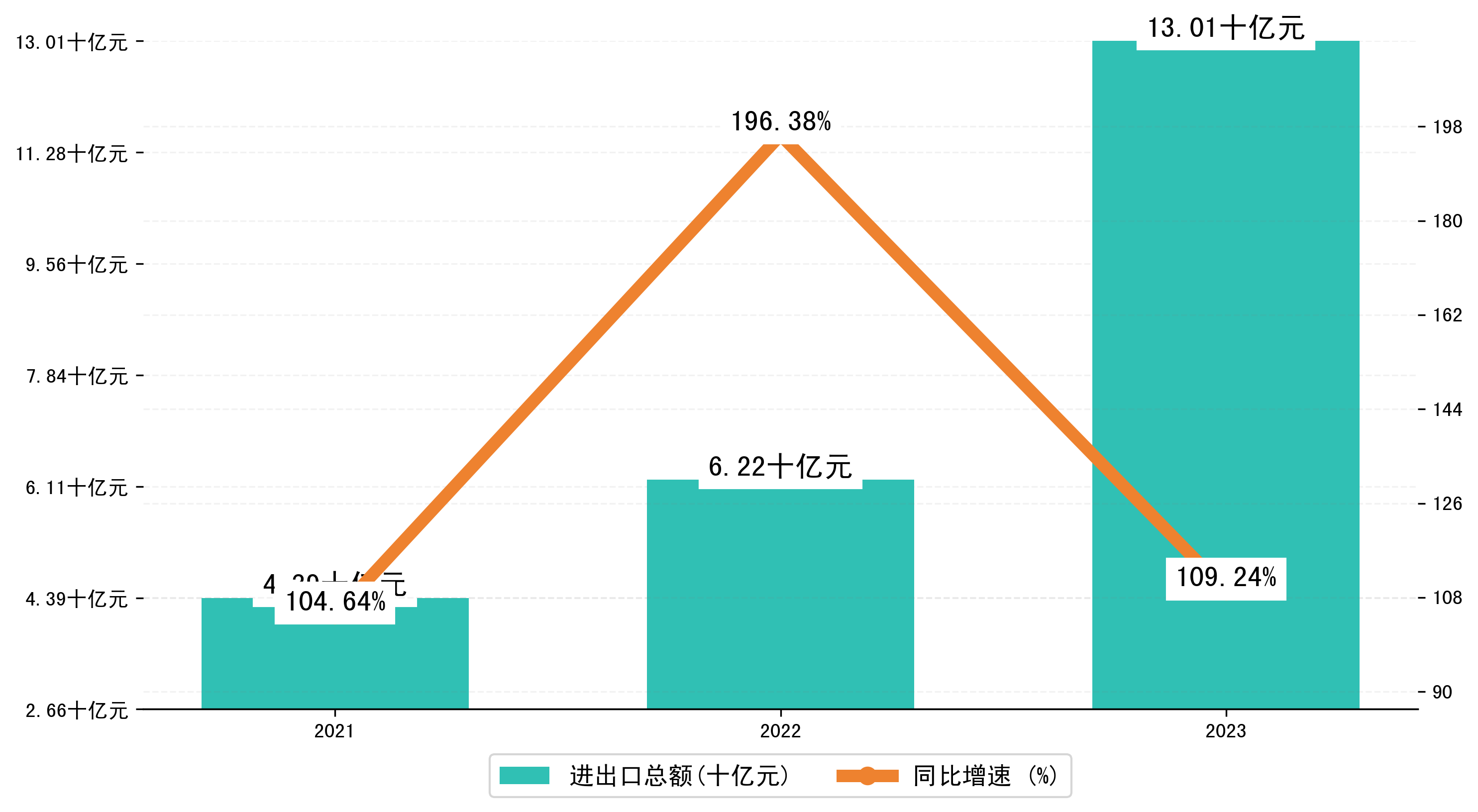 以人民币计,2023年1-2月岳阳市进出口总额为130,0630.4831万元,相比上年同期增加了67,9031.629万元,同比增加了109.30%。