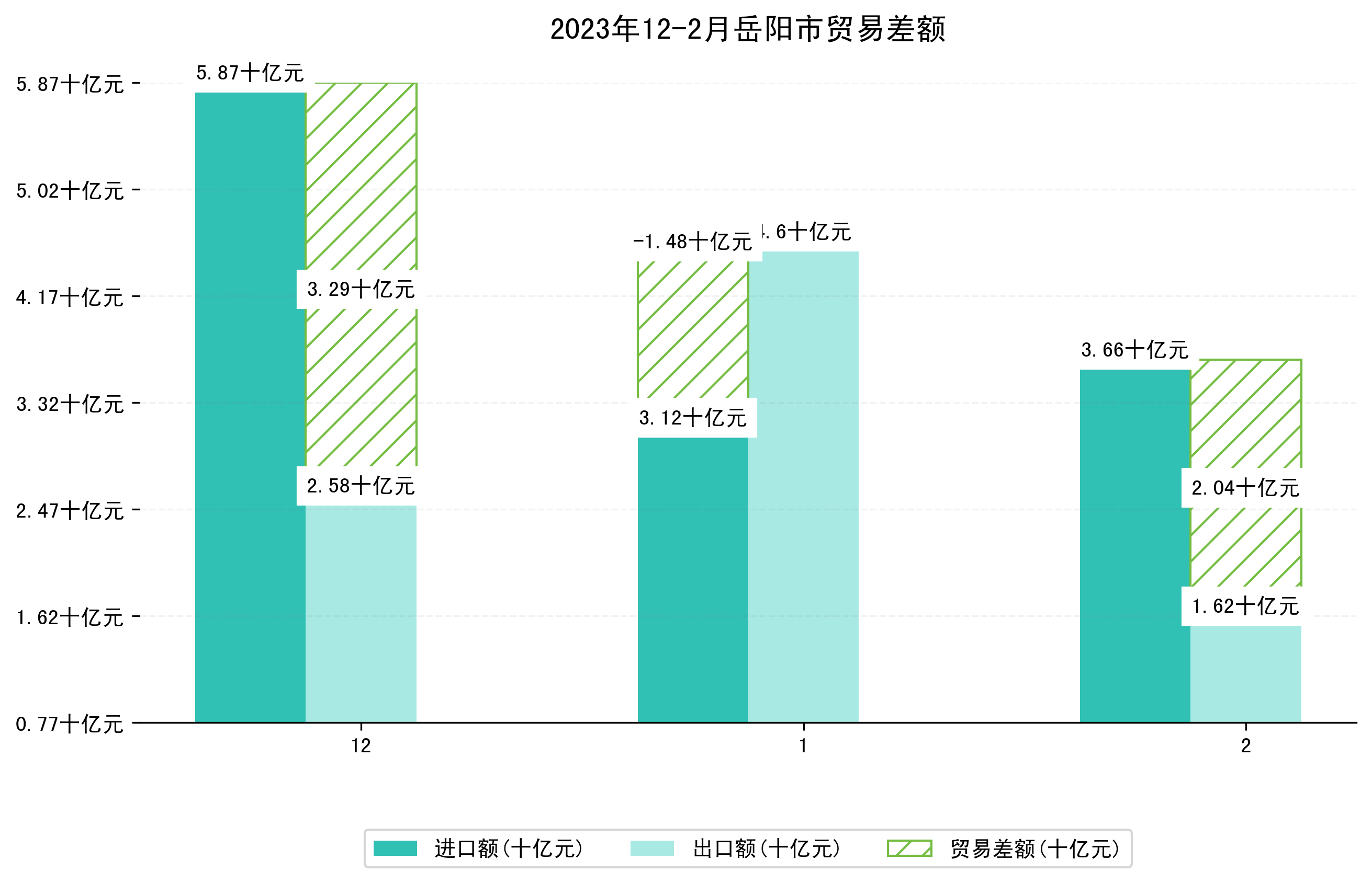 2023年2月岳阳市进出口总额及进出口差额统计分析