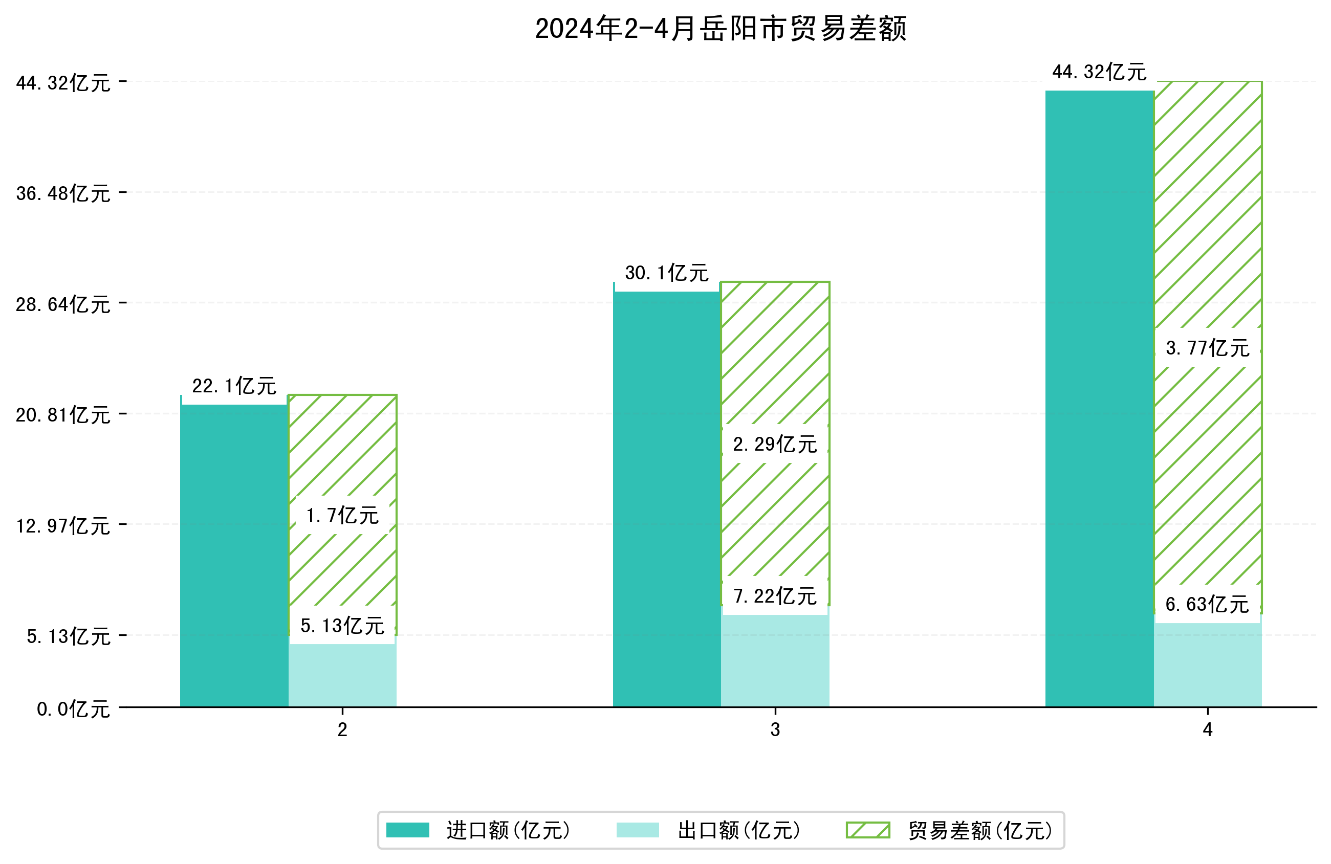 2024年4月岳阳市进出口总额及进出口差额统计分析