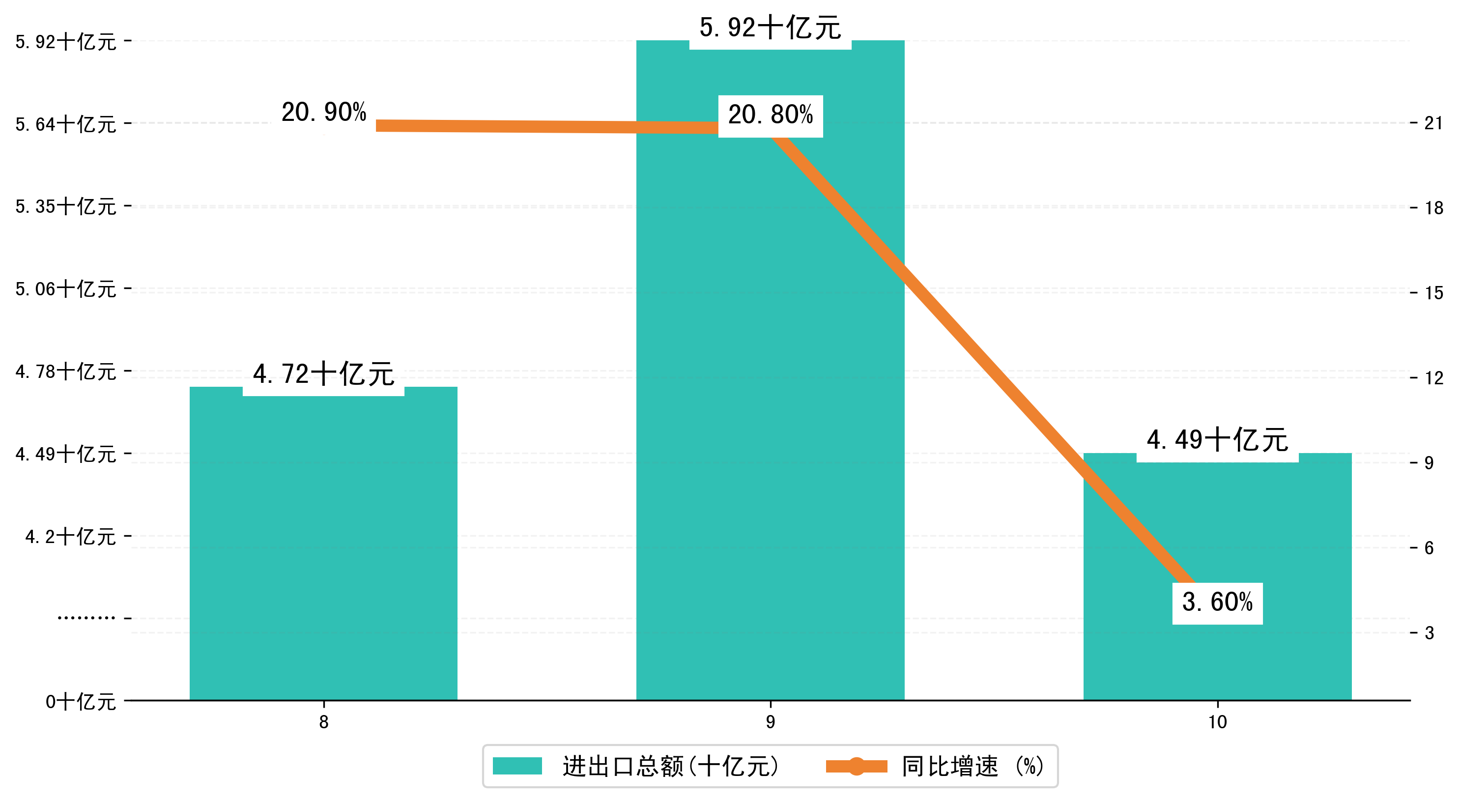(图一:2023年8-10月岳阳市进出口总额)