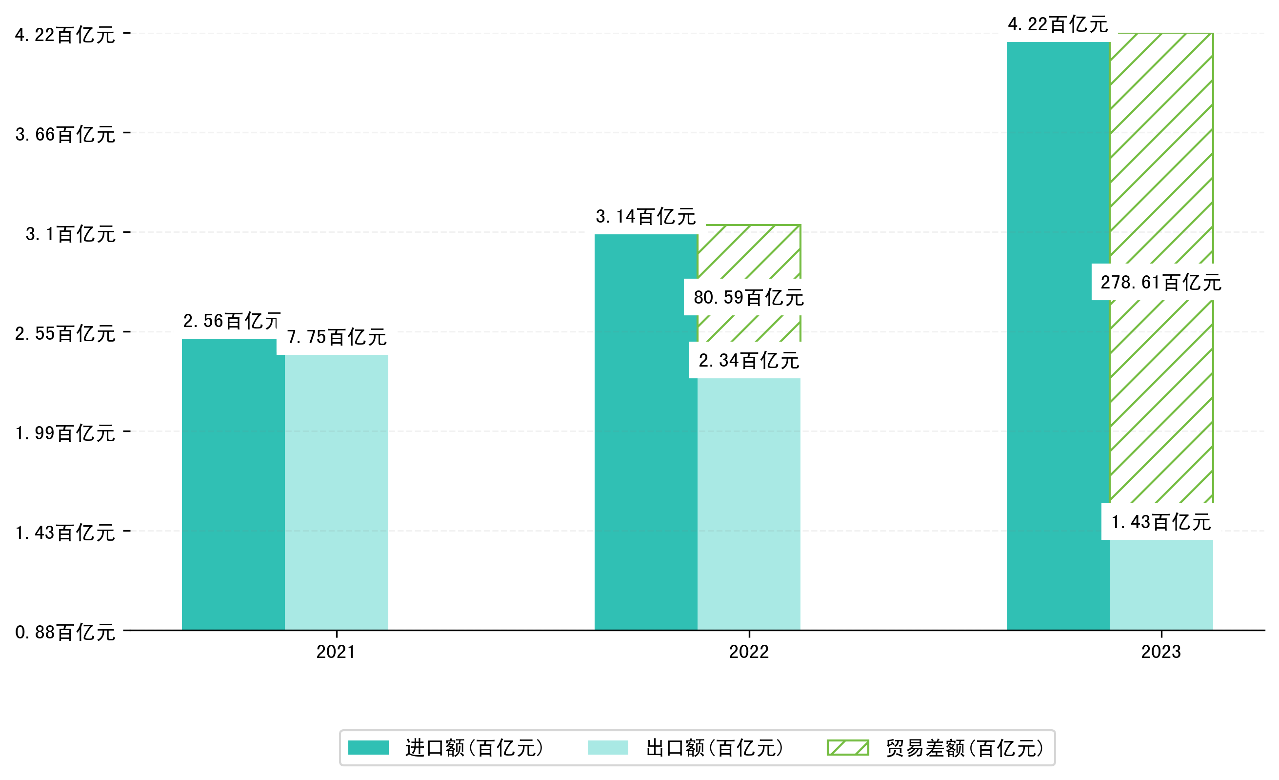 以人民币计,2023年1-10月岳阳市贸易差额为278,6112,2996万元(贸易逆差),相比上年同期减少了198,0216,5611万元,同比减少245.72%。