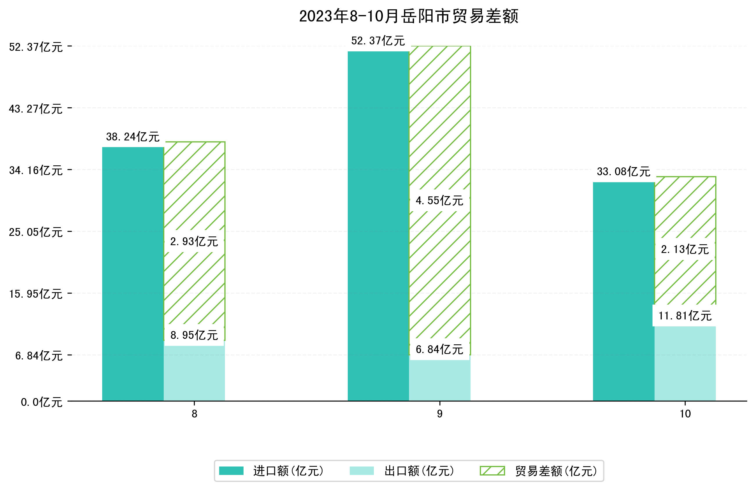 (图四:2023年8-10月岳阳市贸易差额)