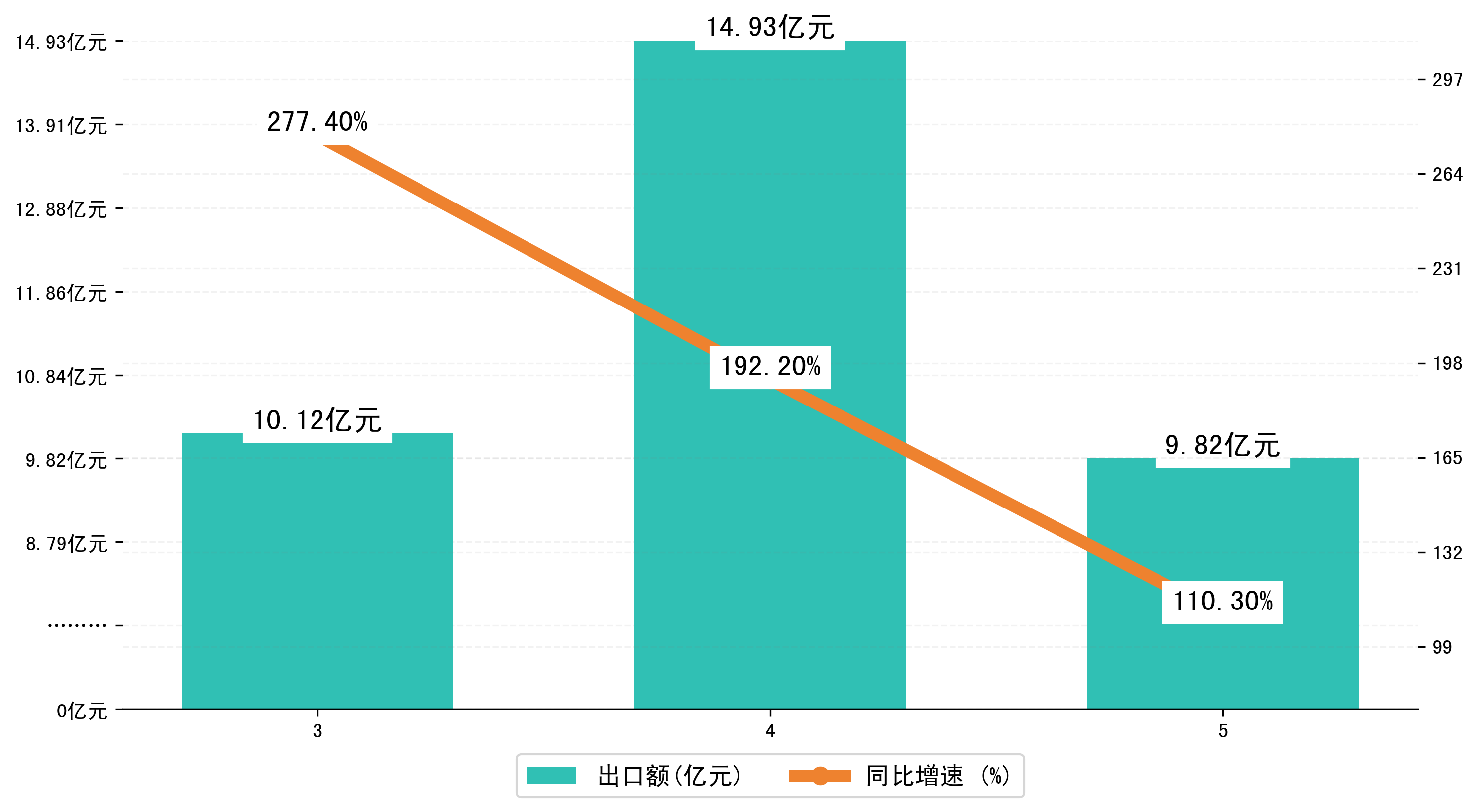 (图二:2023年3-5月岳阳市出口额)