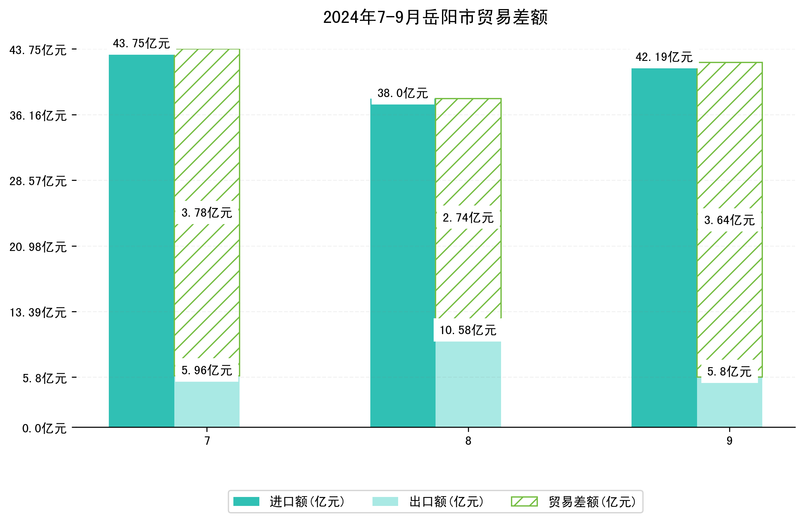 2024年9月岳阳市进出口总额及进出口差额统计分析