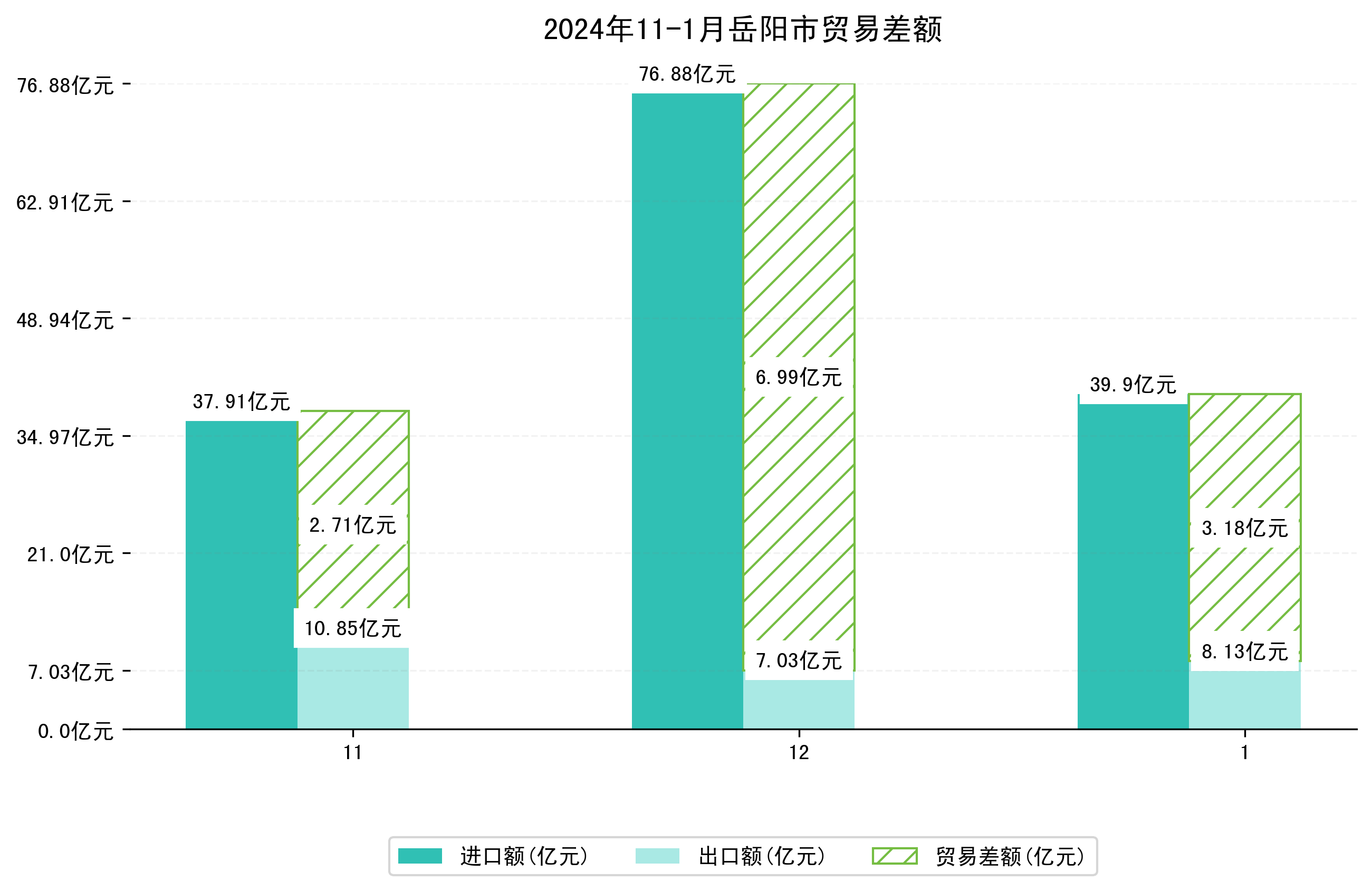 2024年1月岳阳市进出口总额及进出口差额统计分析