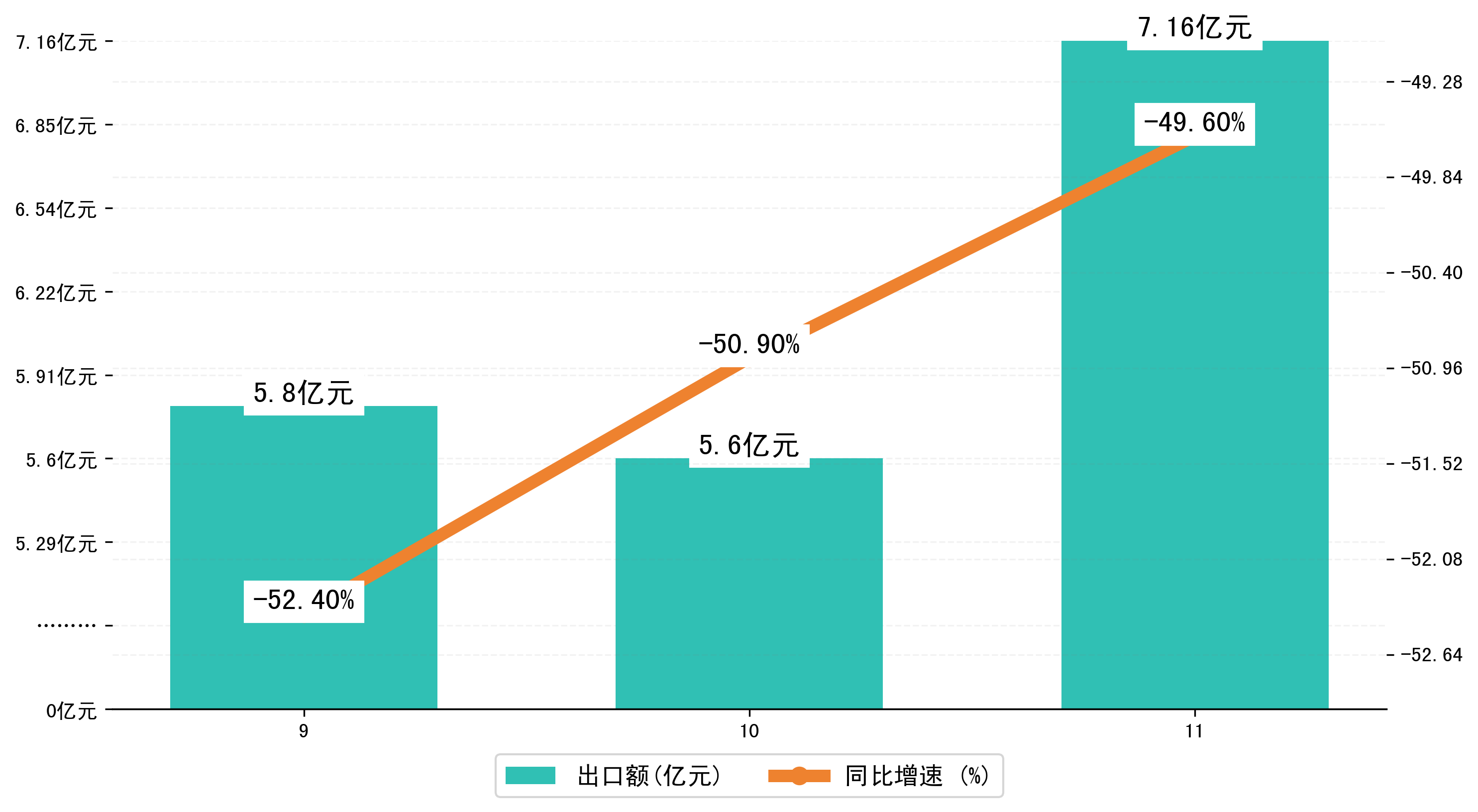 (图二:2024年9-11月岳阳市出口额)