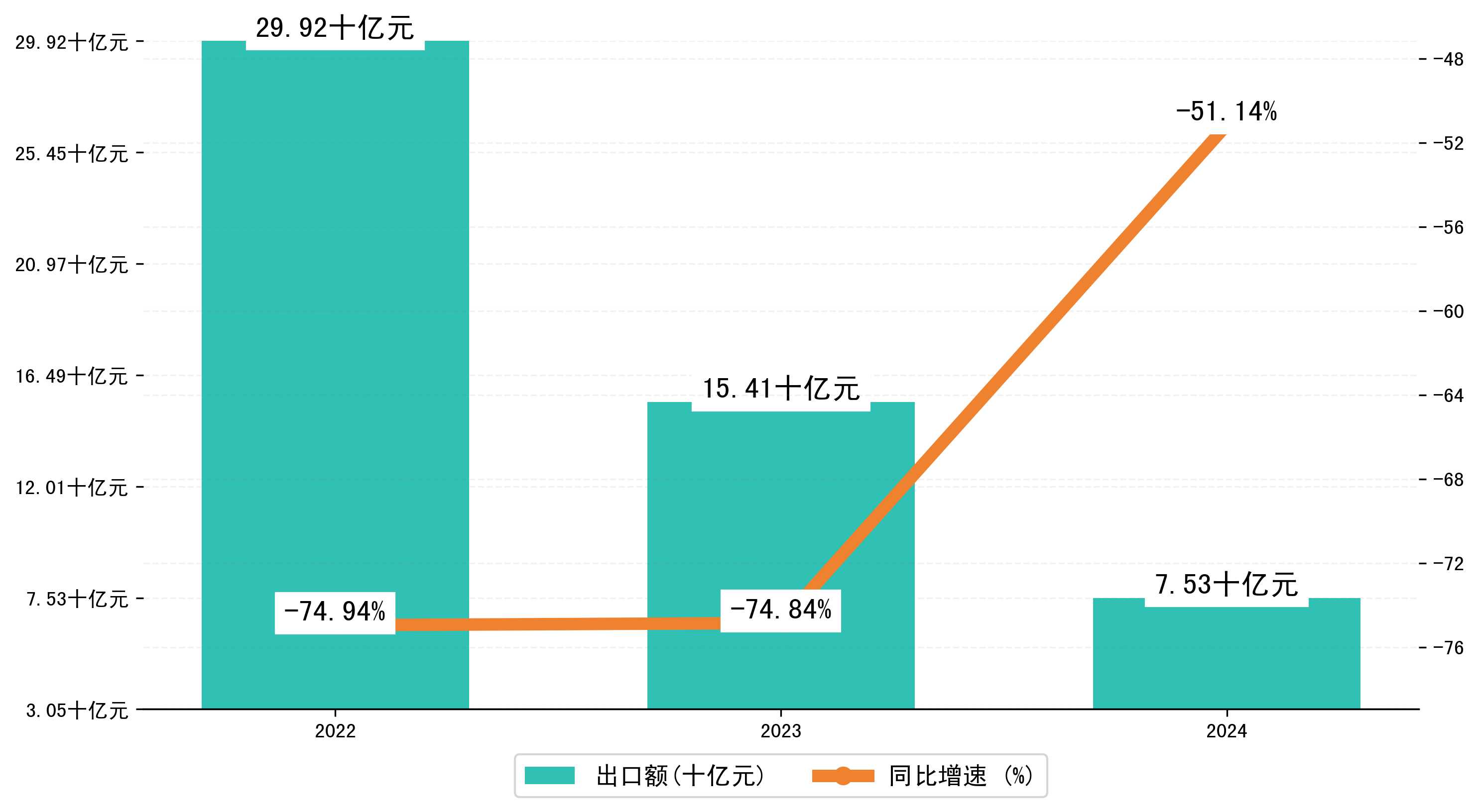 以人民币计,2024年1-11月岳阳市出口额为75,2794.9379万元,相比上年同期减少了78,7990.4757万元,同比减少了-49.60%。
