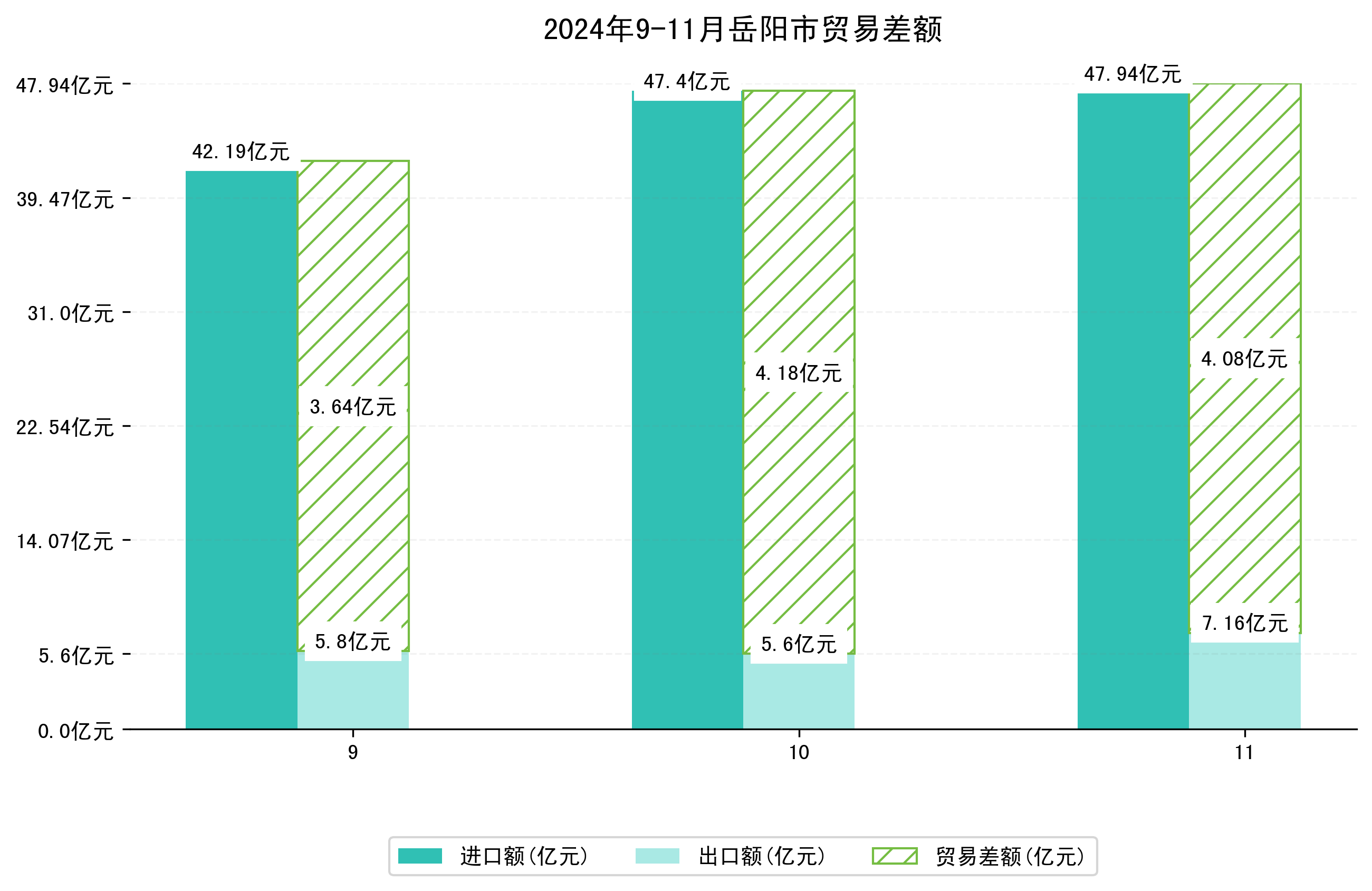 (图四:2024年9-11月岳阳市贸易差额)