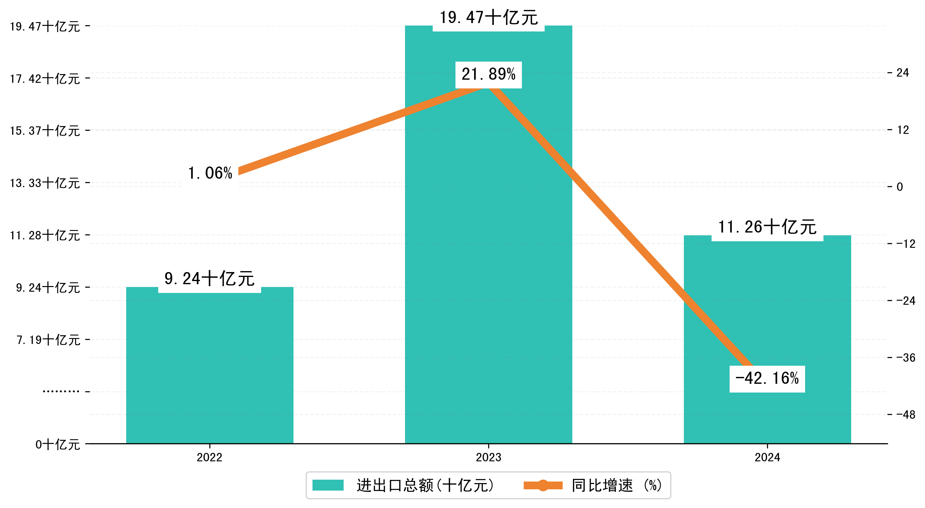 以人民币计,2024年1-3月岳阳市进出口总额为112,5821.9337万元,相比上年同期减少了82,0778.7474万元,同比减少了-42.10%。