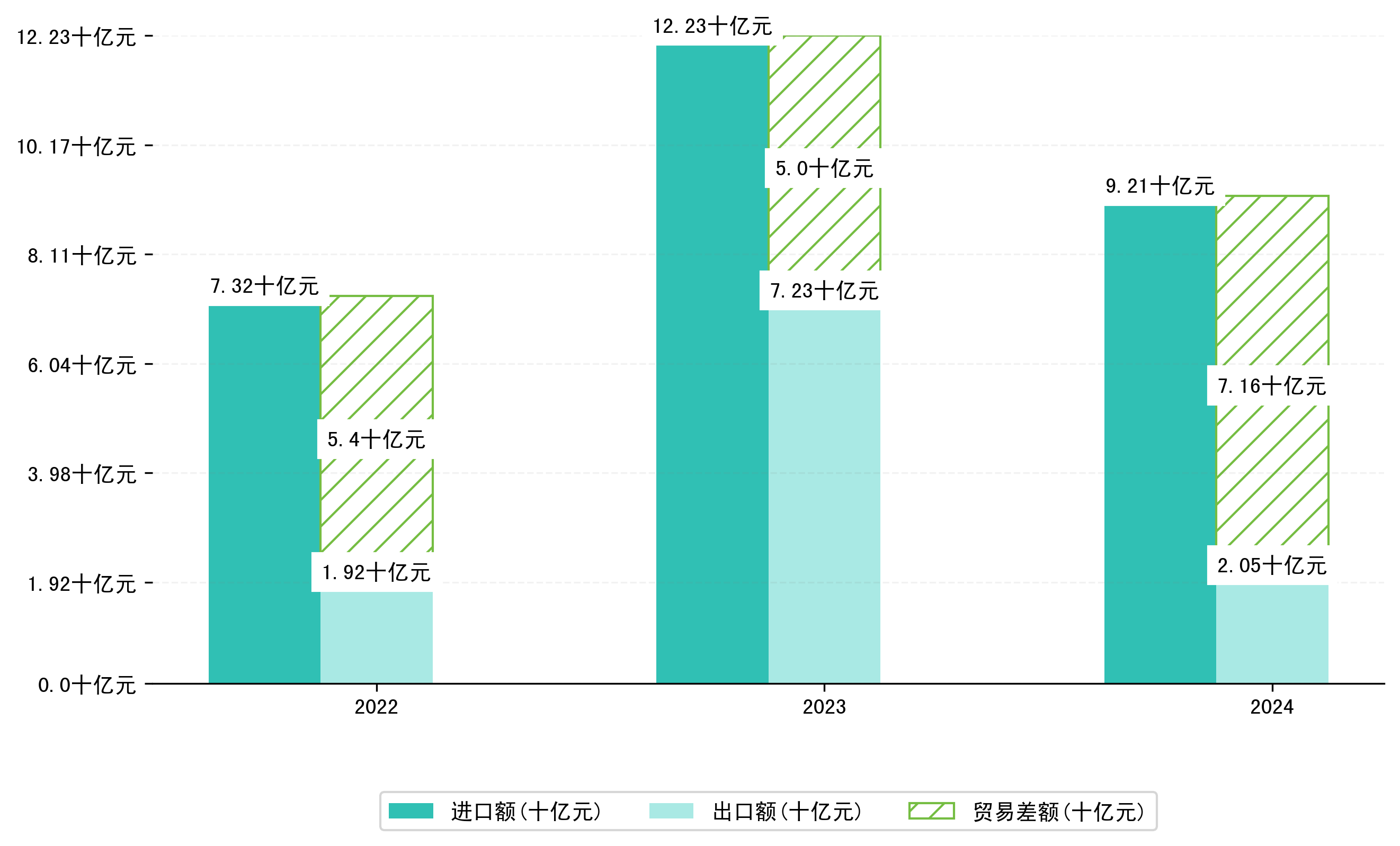 以人民币计,2024年3月岳阳市贸易差额为22,8741,0796万元(贸易逆差),相比上月减少了5,9055,0085万元,即8318,7892万美元;相比上年同期增加了21,4784,5987万元,同比增加-48.43%。