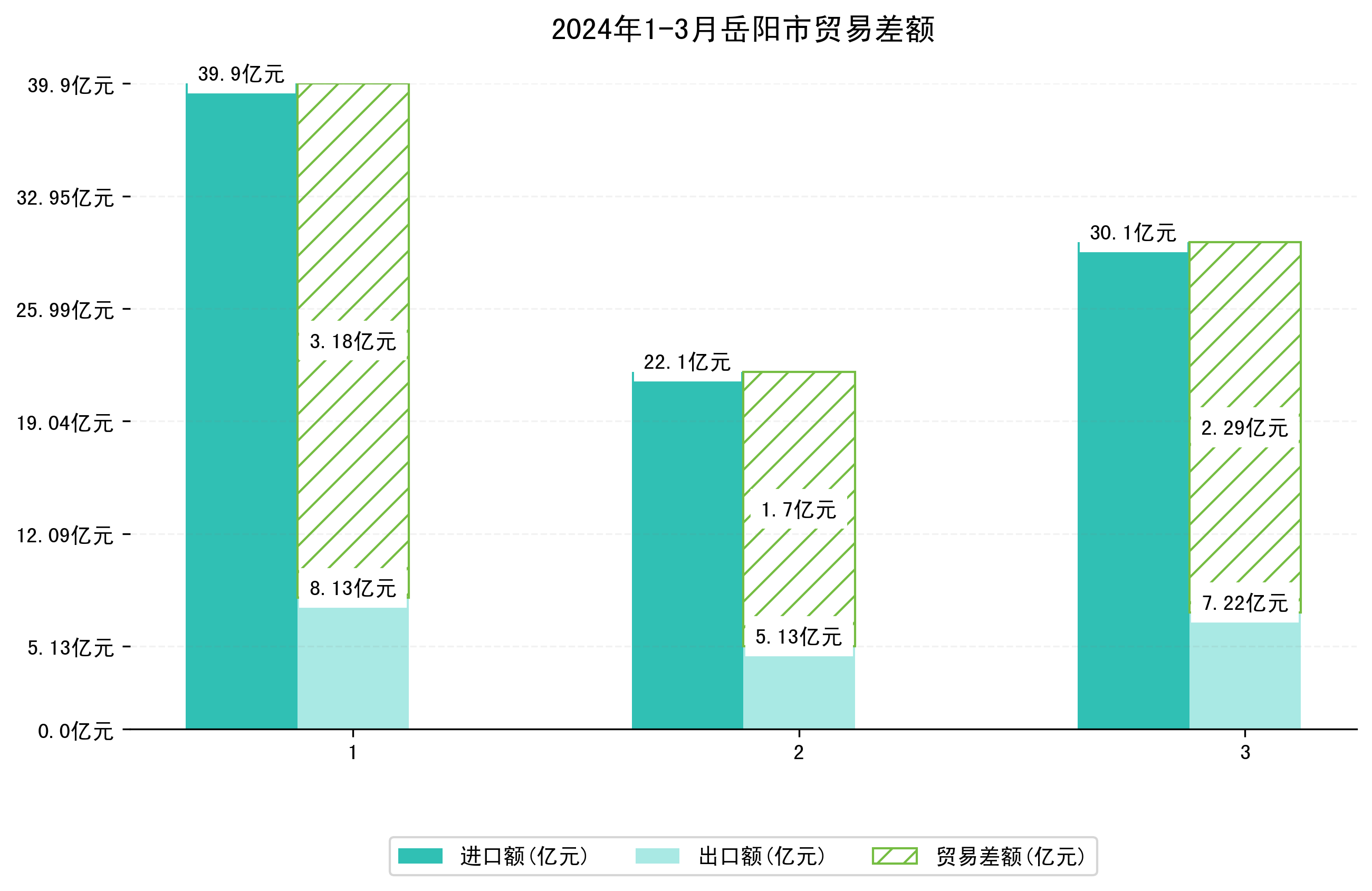 2024年3月岳阳市进出口总额及进出口差额统计分析