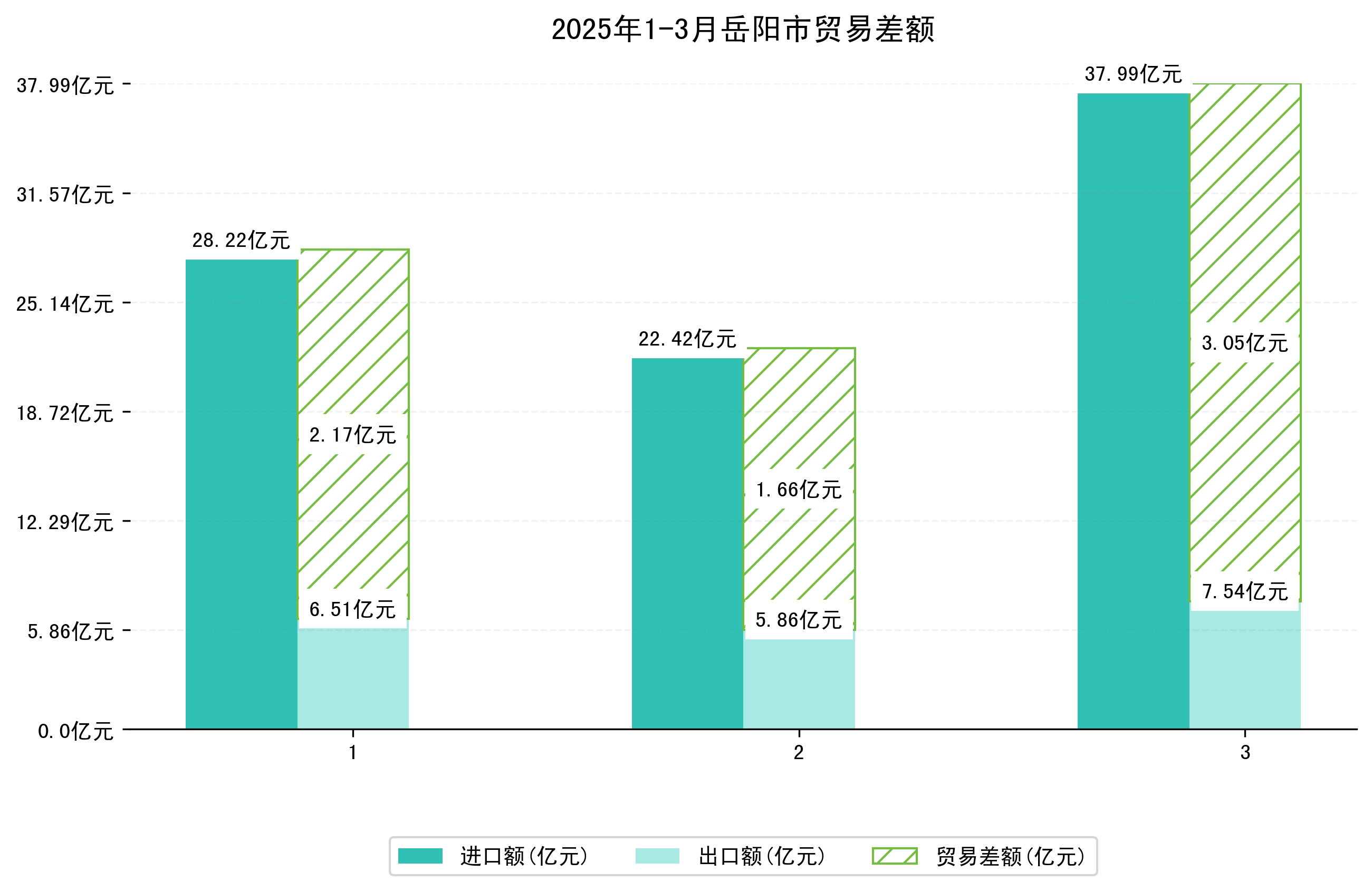 2025年3月岳阳市进出口总额及进出口差额统计分析