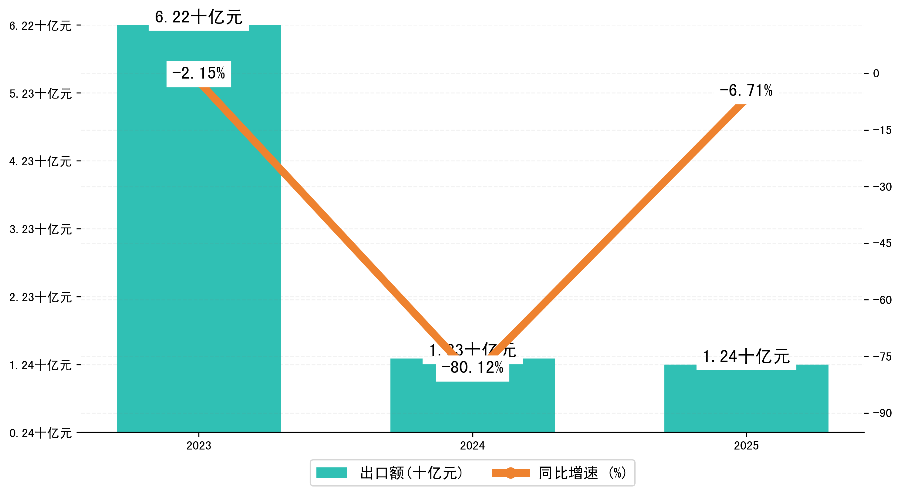 以人民币计,2025年1-2月岳阳市出口额为12,3730.9537万元,相比上年同期减少了8896.5919万元,同比减少了-6.70%。