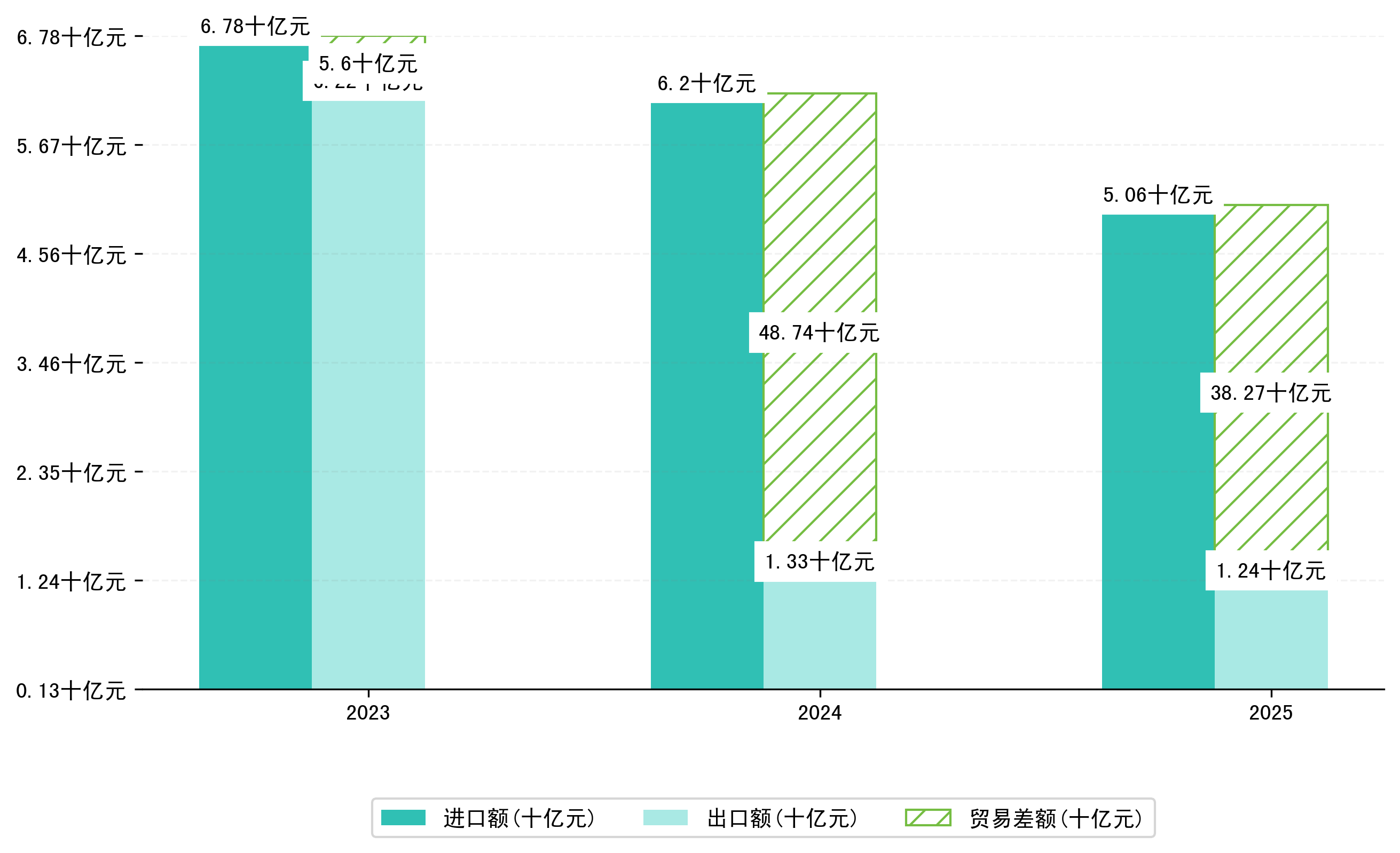 以人民币计,2025年2月岳阳市贸易差额为16,5563,6225万元(贸易逆差),相比上月增加了5,1540,6320万元,即7135,4264万美元;相比上年同期增加了4122,4486万元,同比增加-2.43%。