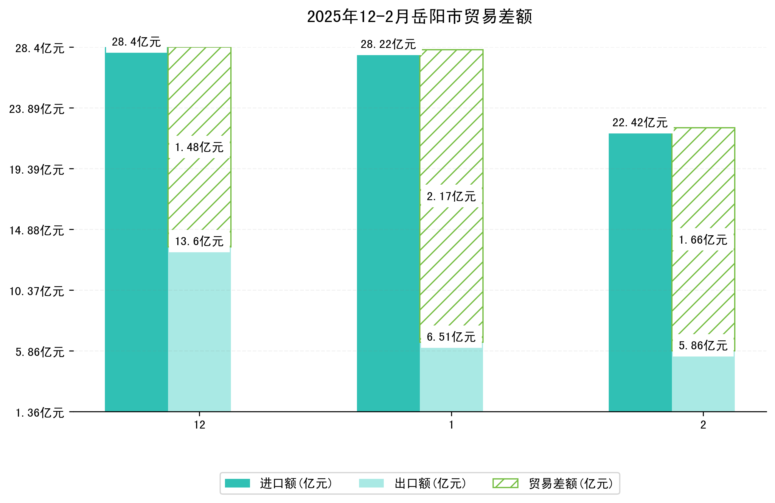 2025年2月岳阳市进出口总额及进出口差额统计分析