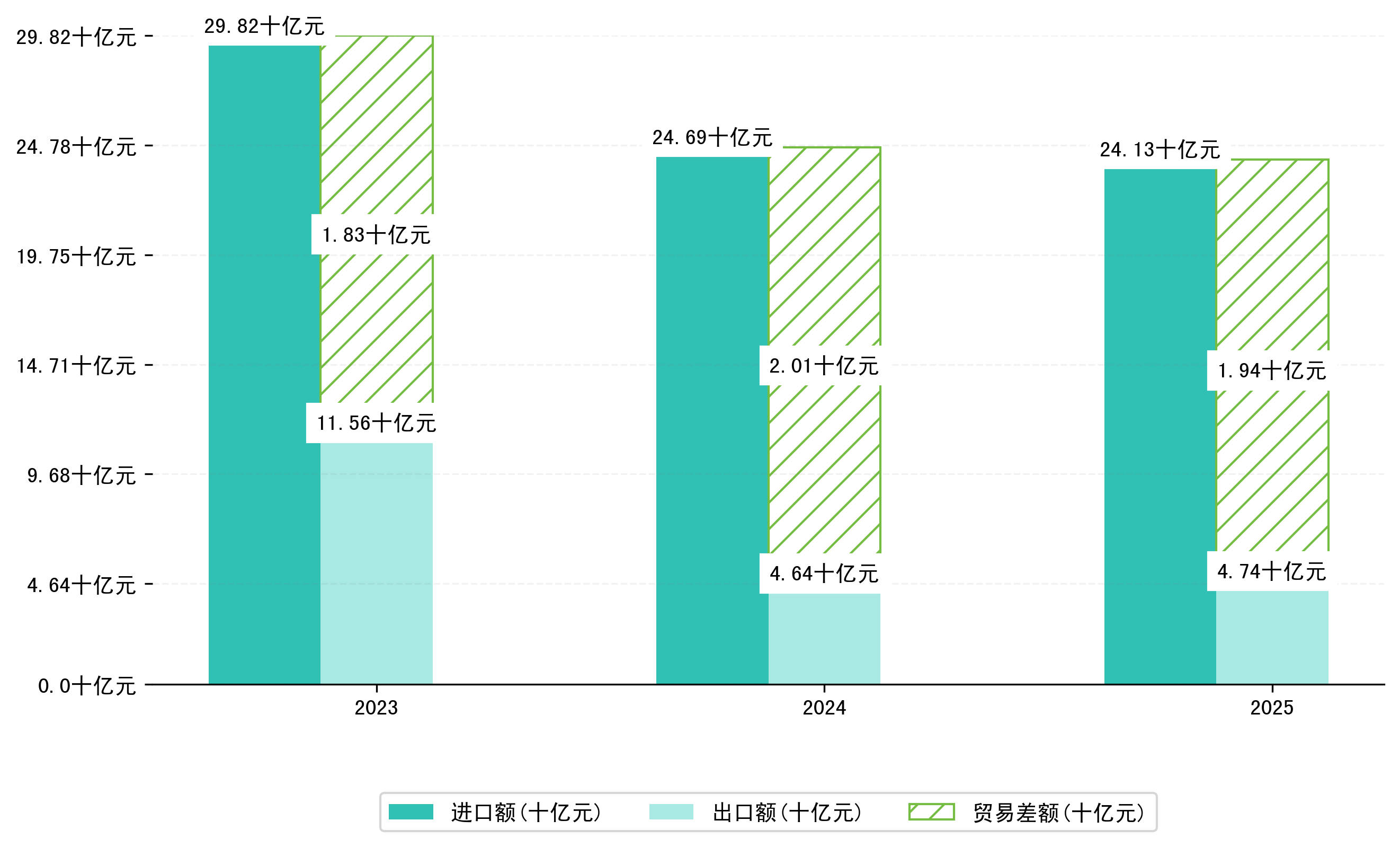 以美元计,2025年1-7月岳阳市贸易差额为26,9903,5189万美元(贸易逆差),相比上年同期增加了1,2253,0104万美元,同比增加-4.34%。