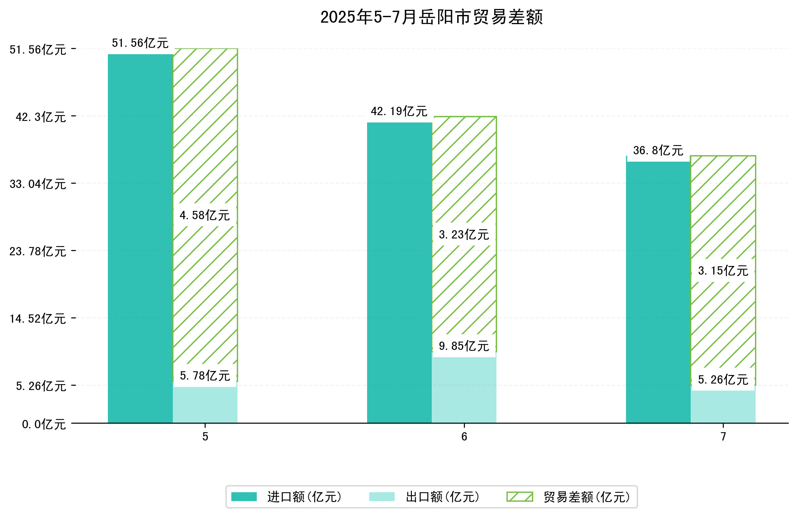 2025年7月岳阳市进出口总额及进出口差额统计分析