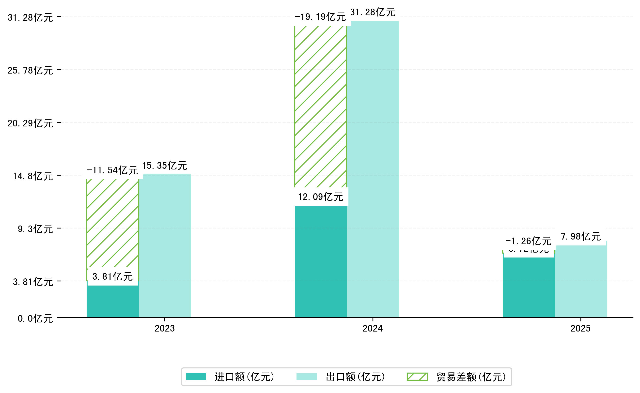 以美元计,2025年5月榆林市贸易差额为1149,6535万美元(贸易顺差),相比上月增加了1014,6839万美元;相比上年同期增加了1558,6596万美元,同比增加-381.08%。