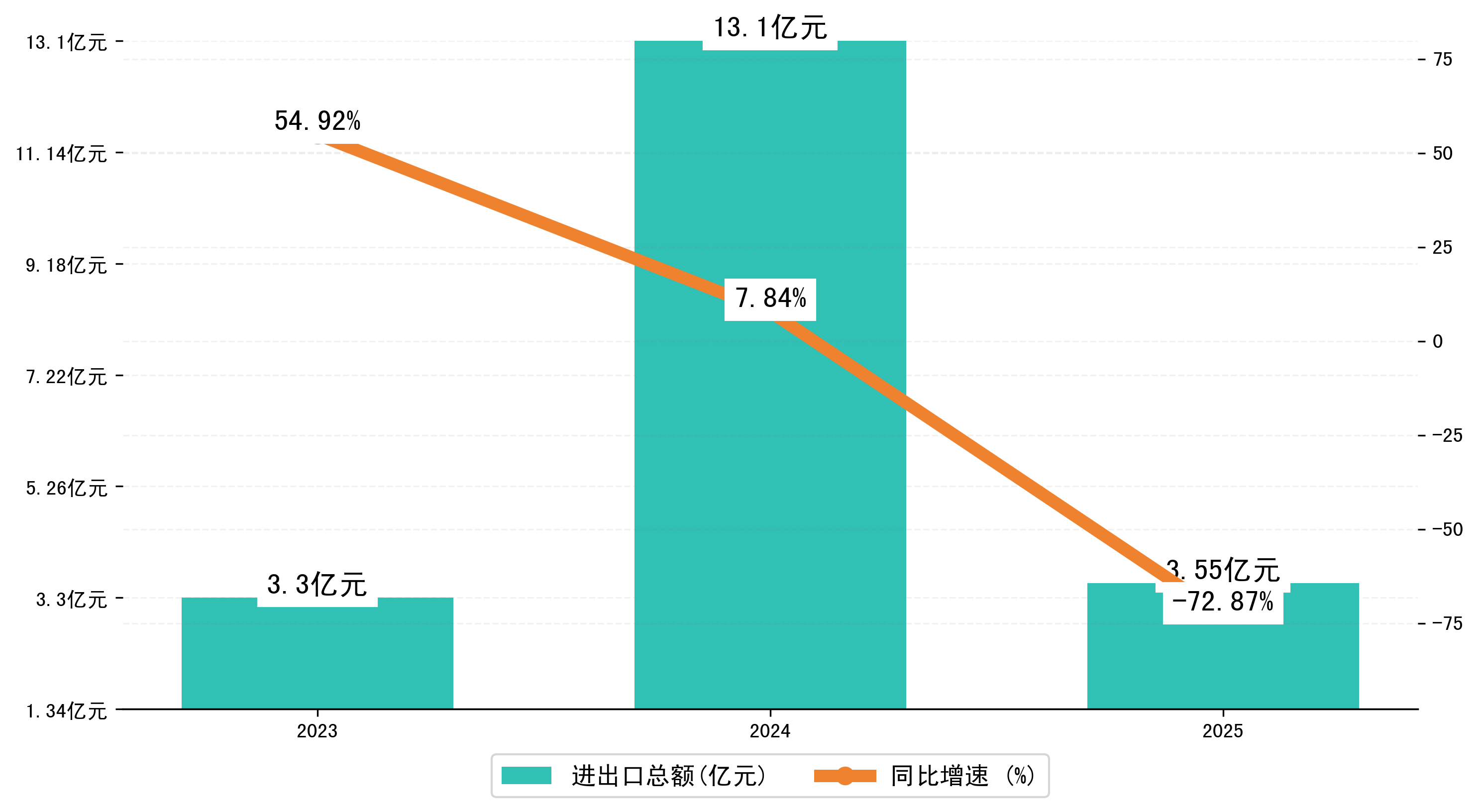 以人民币计,2025年1-1月榆林市进出口总额为3,5547.2971万元,相比上年同期减少了9,5482.0142万元,同比减少了-72.90%。