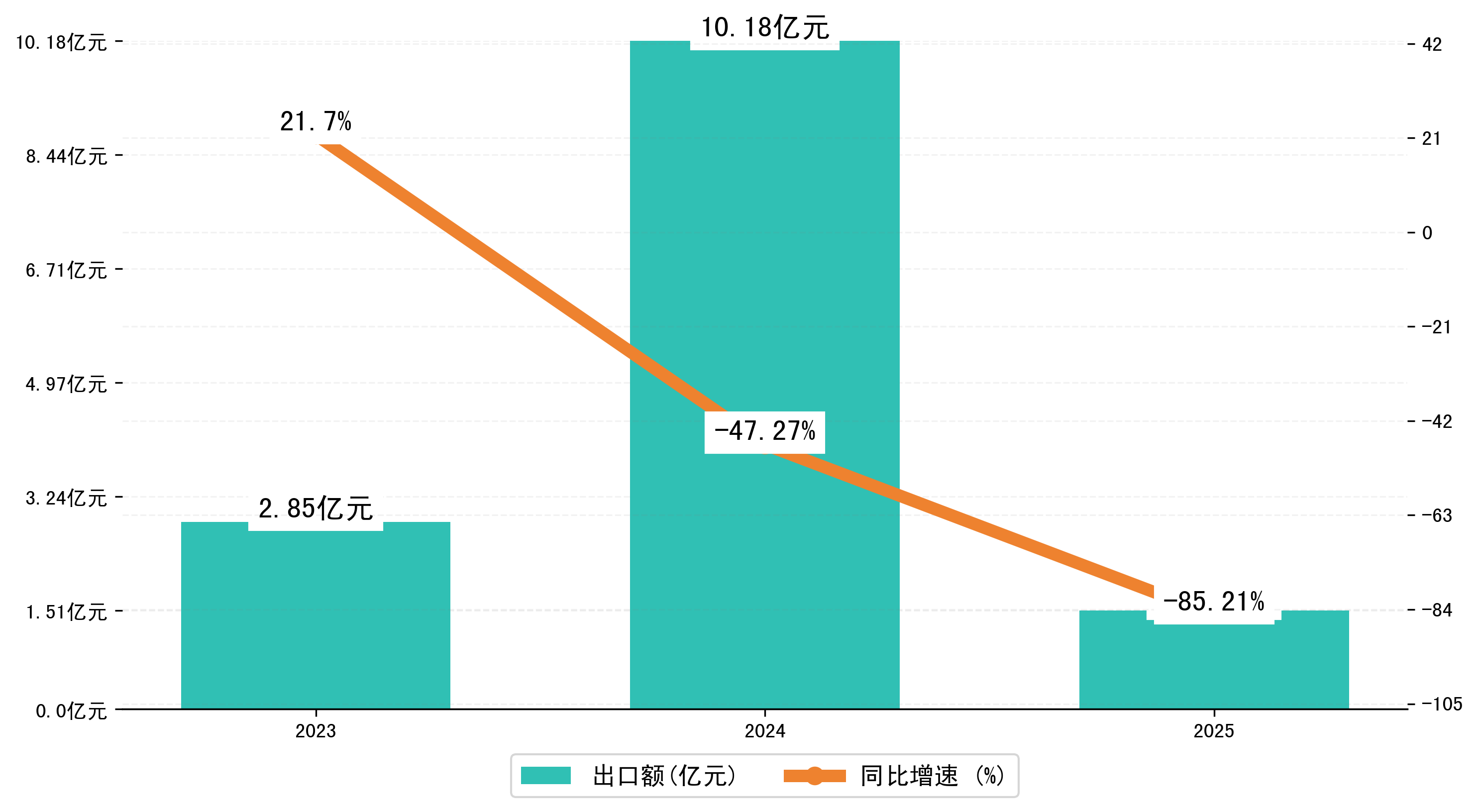 以人民币计,2025年1月榆林市出口额为1,5052.1157万元,相比上月减少了3747.2234万元;相比上年同期减少了8,6723.9124万元,同比减少了-85.20%。