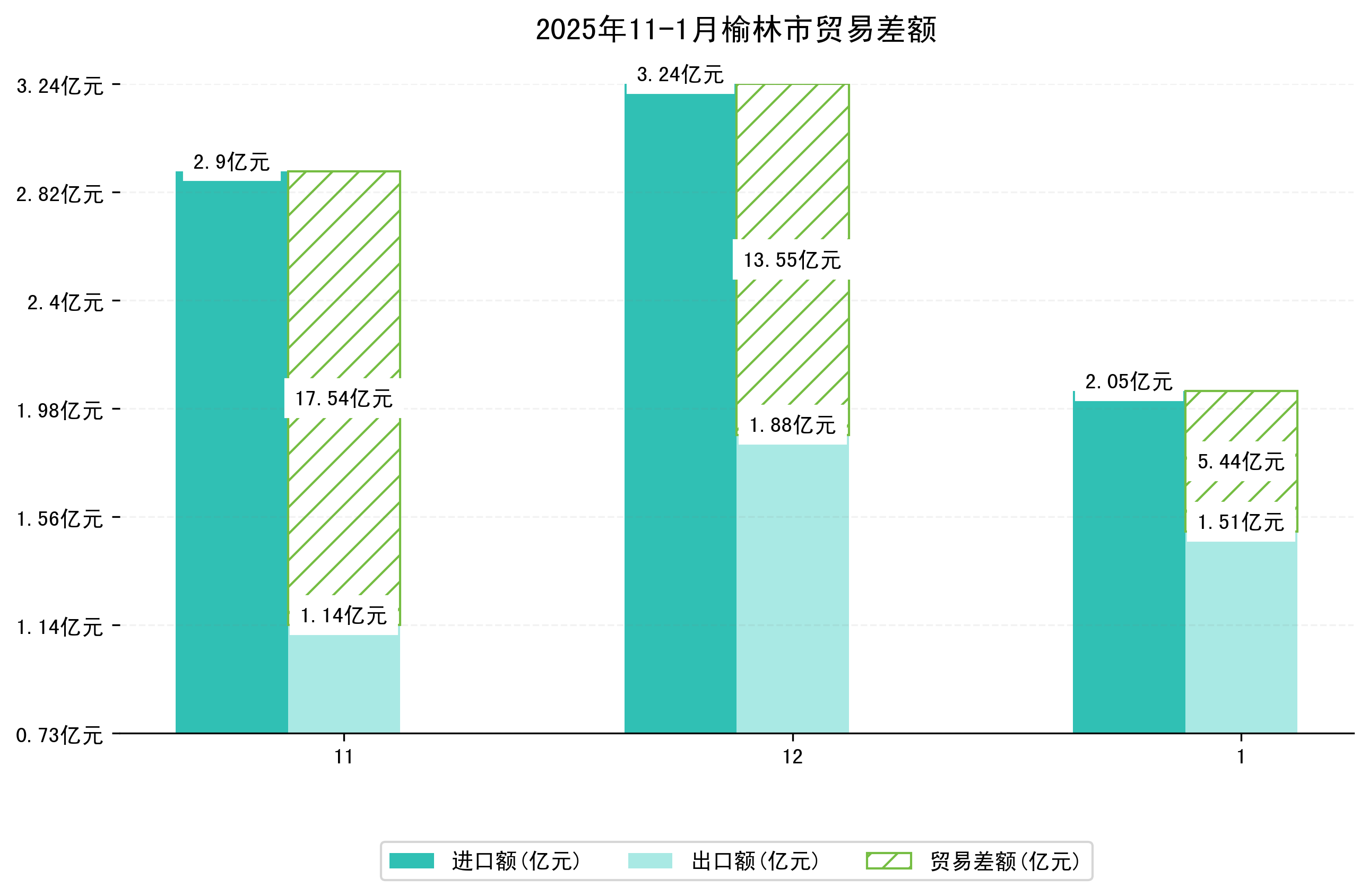(图四:2025年11-1月榆林市贸易差额)