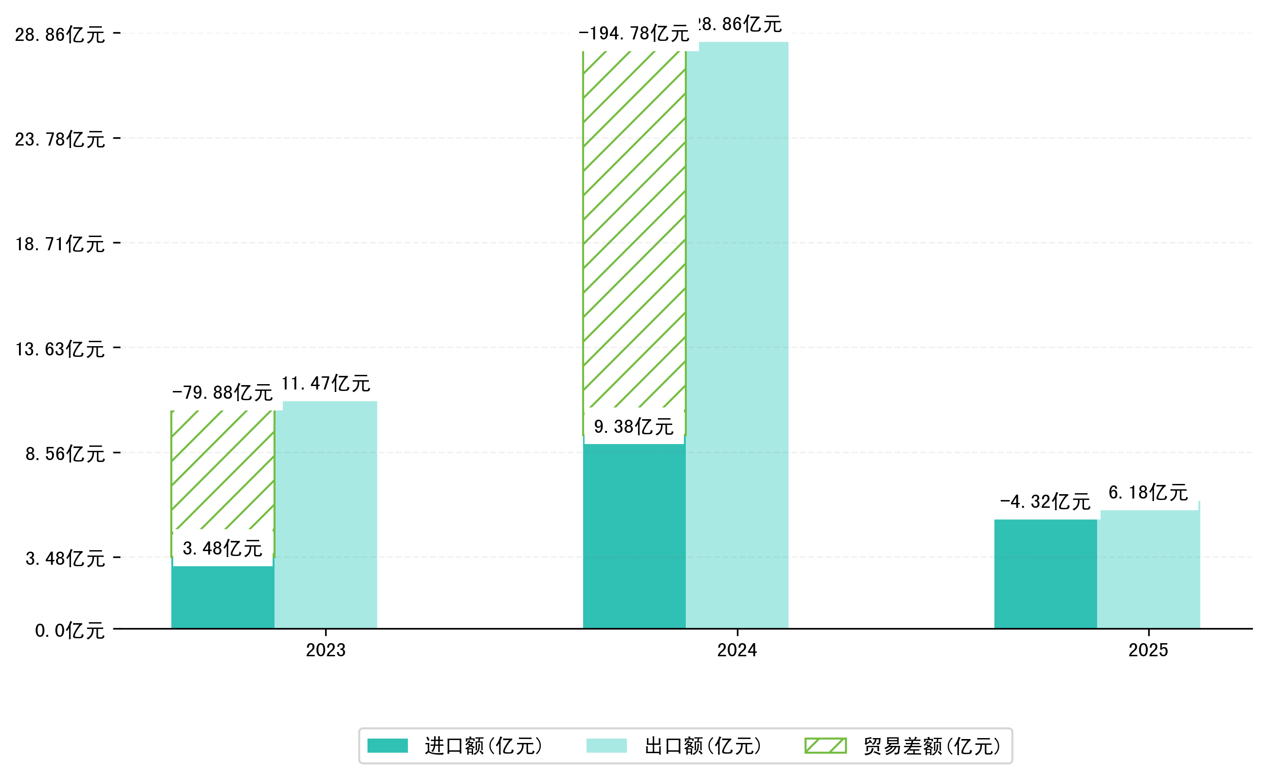 以美元计,2025年4月榆林市贸易差额为134,9696万美元(贸易顺差),相比上月减少了297,5545万美元;相比上年同期减少了7345,8385万美元,同比减少-98.2%。