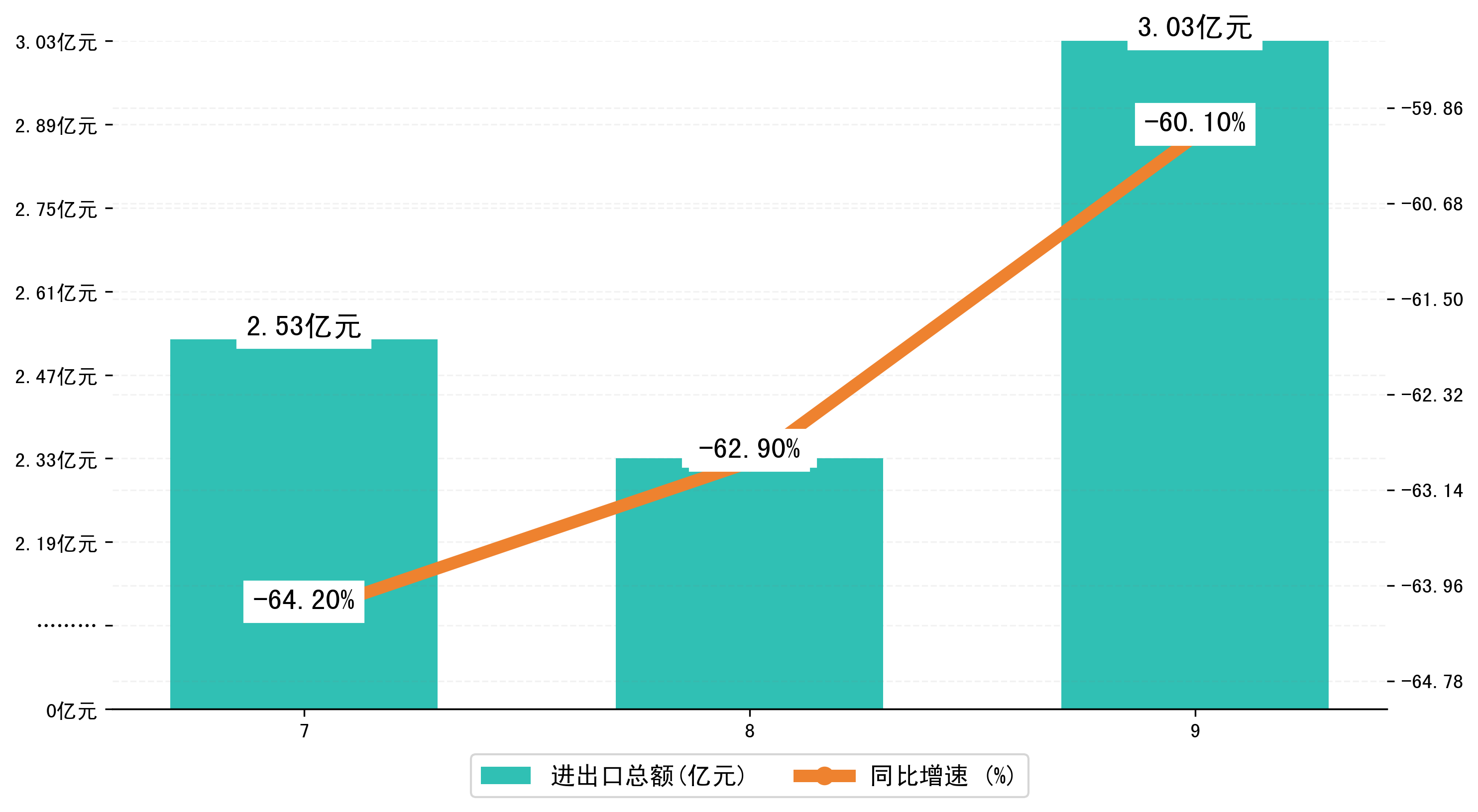 2025年9月榆林市进出口总额及进出口差额统计分析