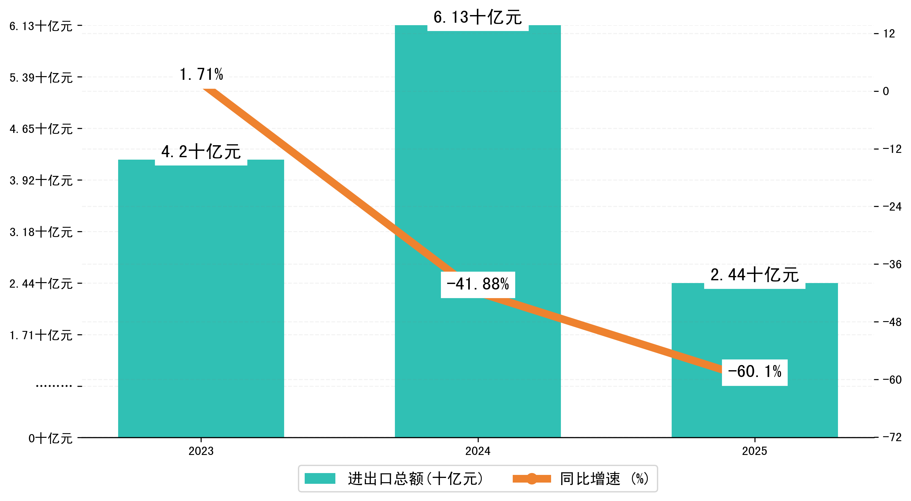 以人民币计,2025年1-9月榆林市进出口总额为24,4407.5221万元,相比上年同期减少了36,8215.1375万元,同比减少了-60.10%。
