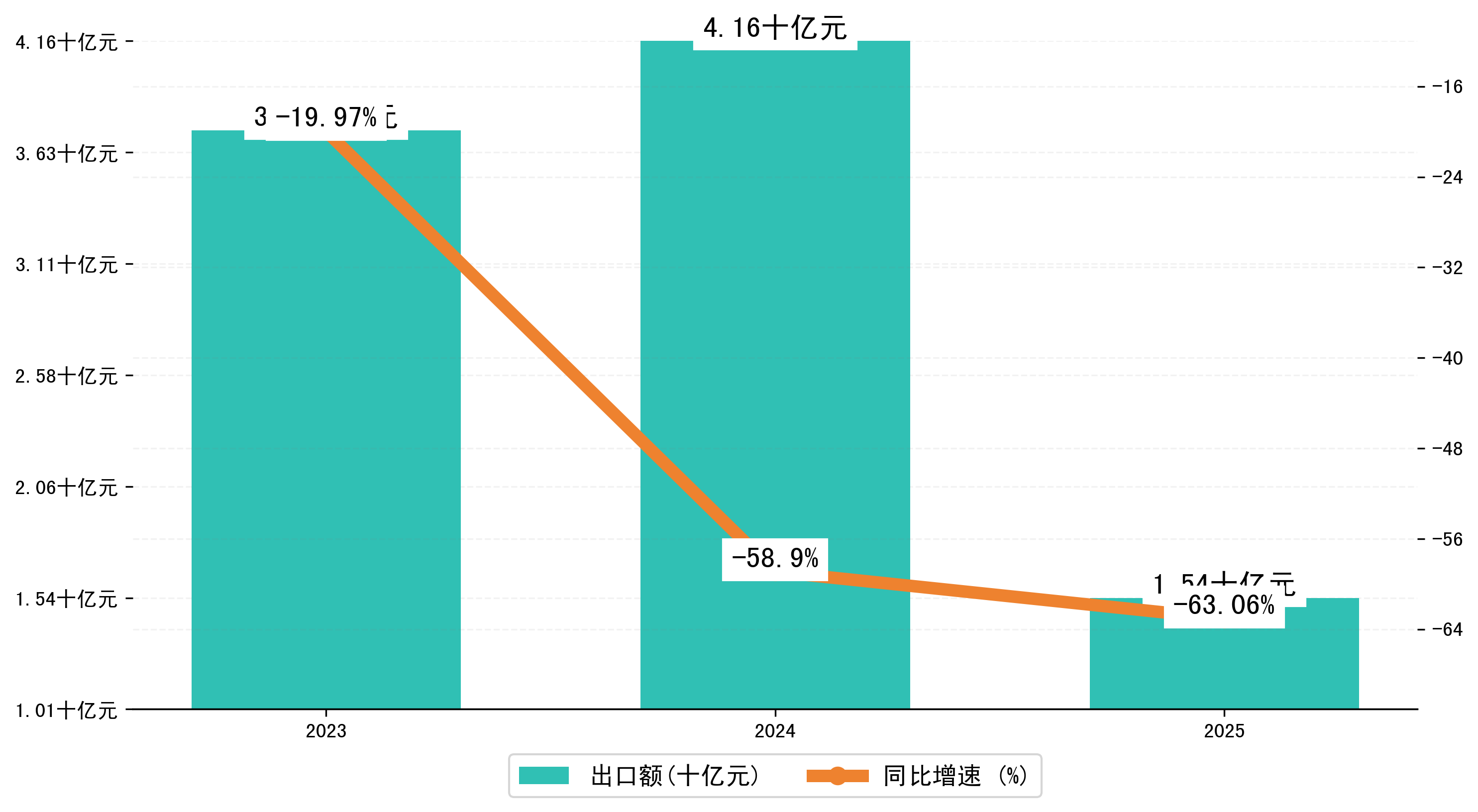 以美元计,2025年1-9月榆林市出口额为2,1431.7423万美元,相比上年同期减少了3,7063.1698万美元,同比减少-63.40%。