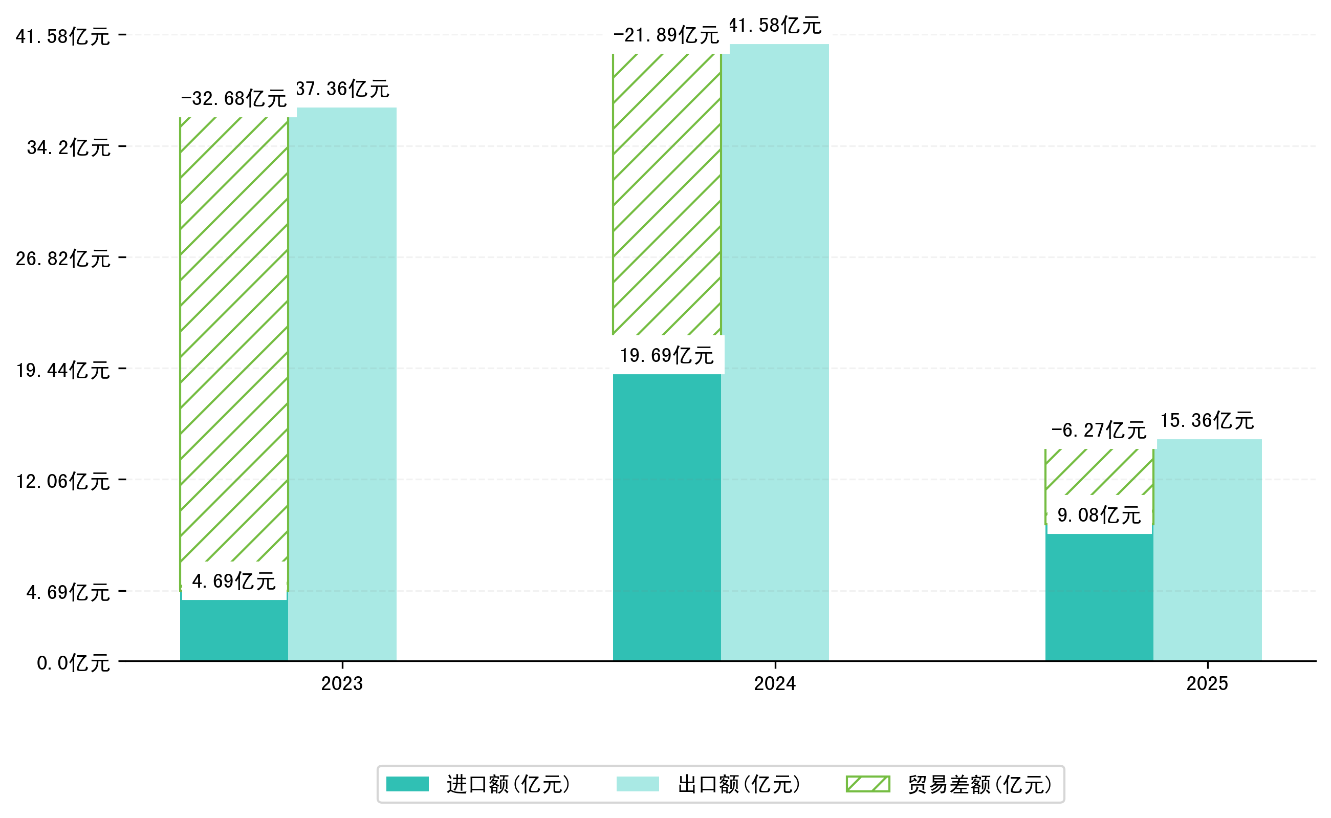 以人民币计,2025年1-9月榆林市贸易差额为6,2740,6441万元(贸易顺差),相比上年同期减少了15,6140,5946万元,同比减少-71.34%。