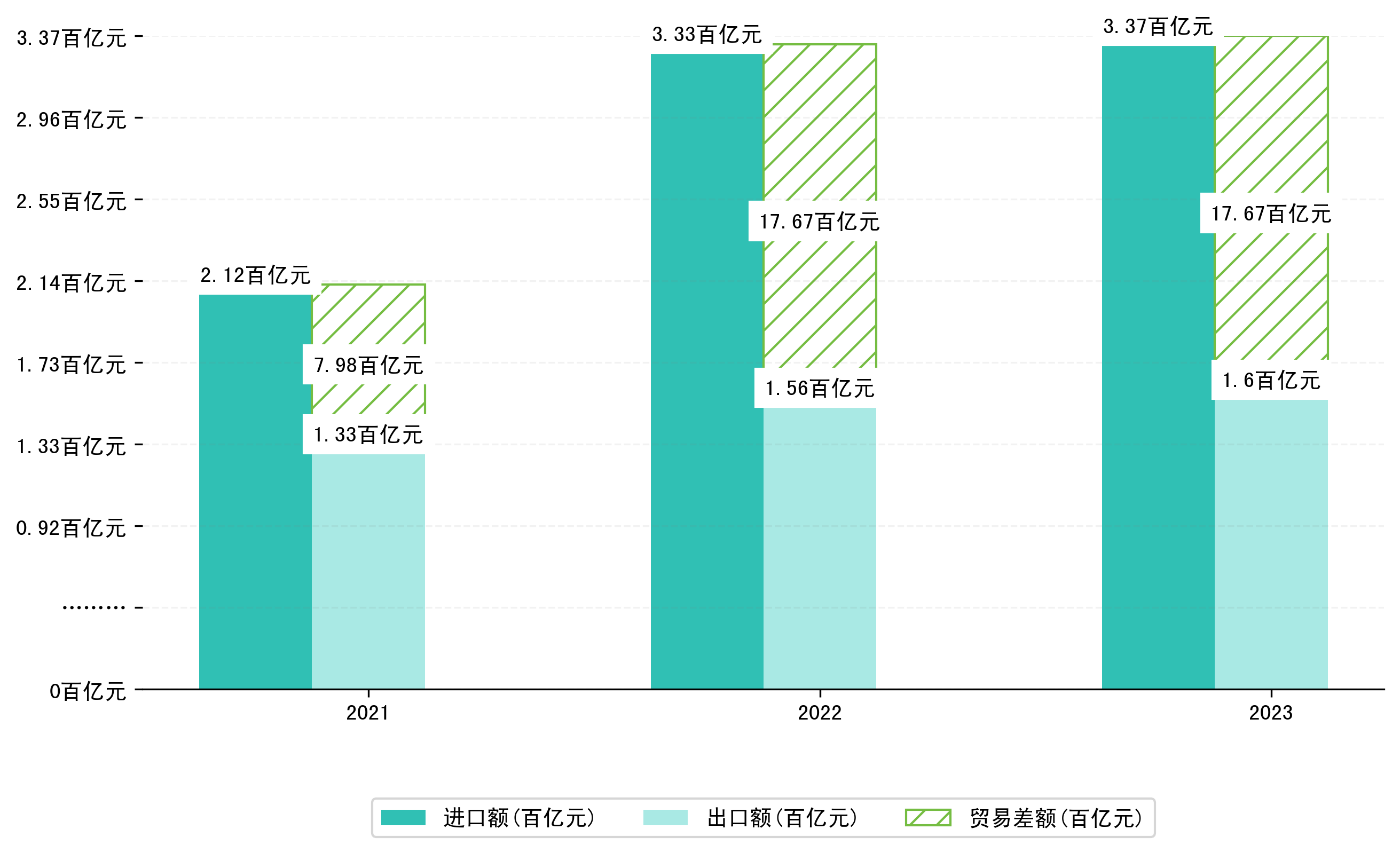 以人民币计,2023年1-9月湛江市进口额为336,6035.1434万元,相比上年同期增加了4,0212.845万元,同比增加了0.50%。