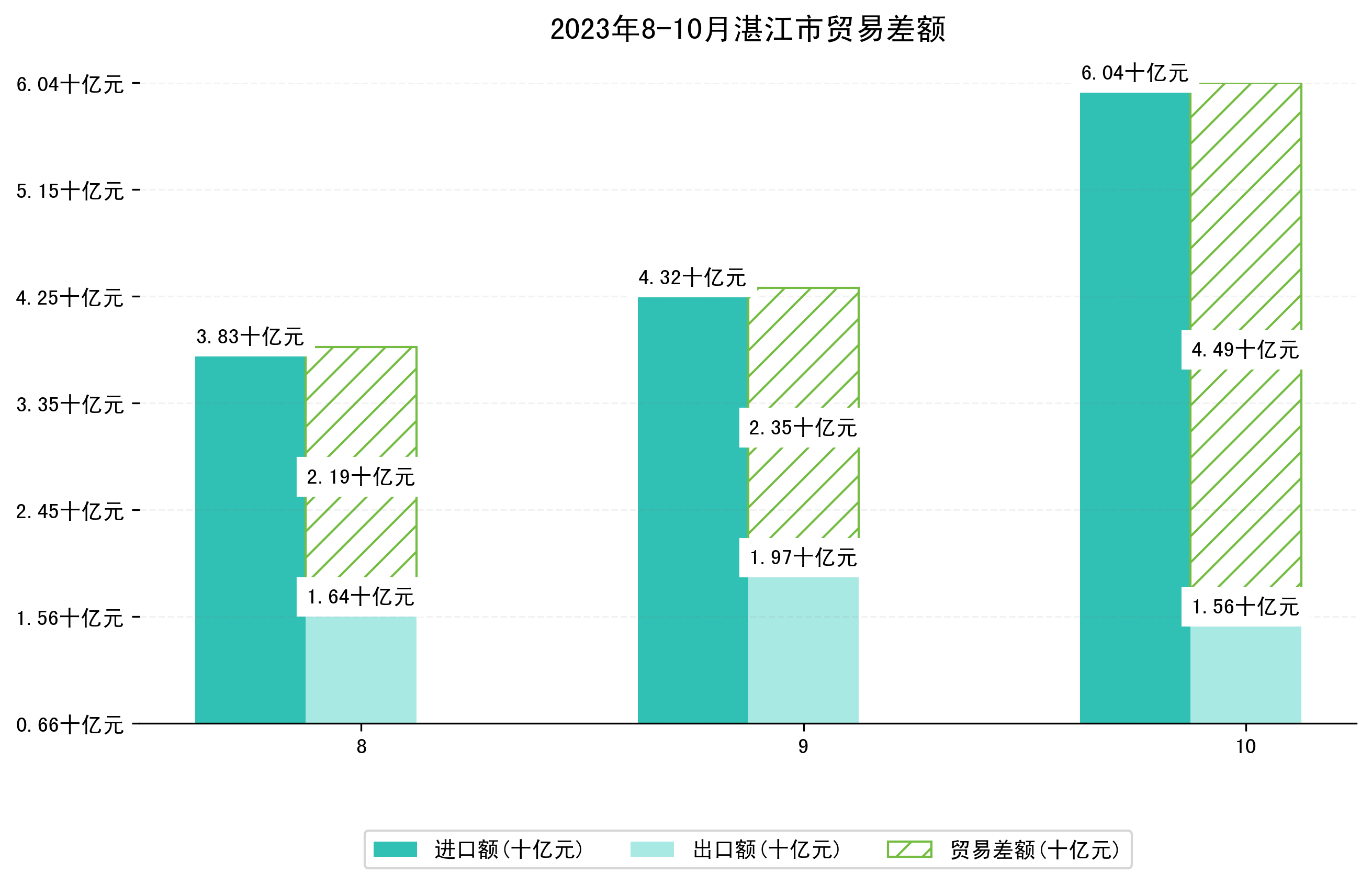 2023年10月湛江市进出口总额及进出口差额统计分析