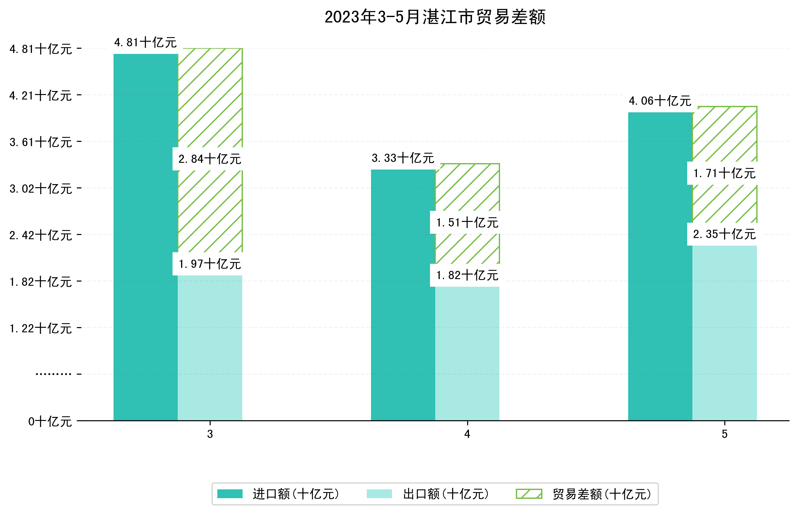 2023年5月湛江市进出口总额及进出口差额统计分析