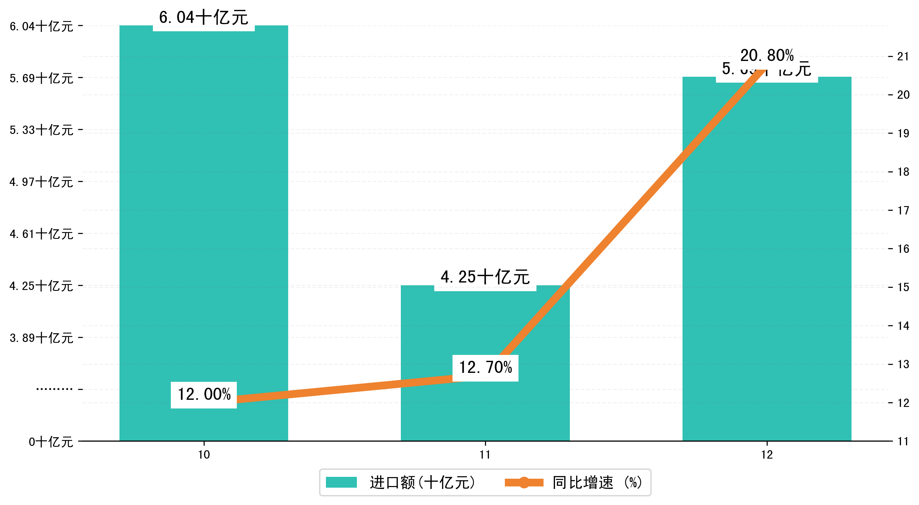以人民币计,2023年1-12月湛江市进口额为496,3436.3583万元,相比上年同期增加了83,7599.4128万元,同比增加了20.80%。