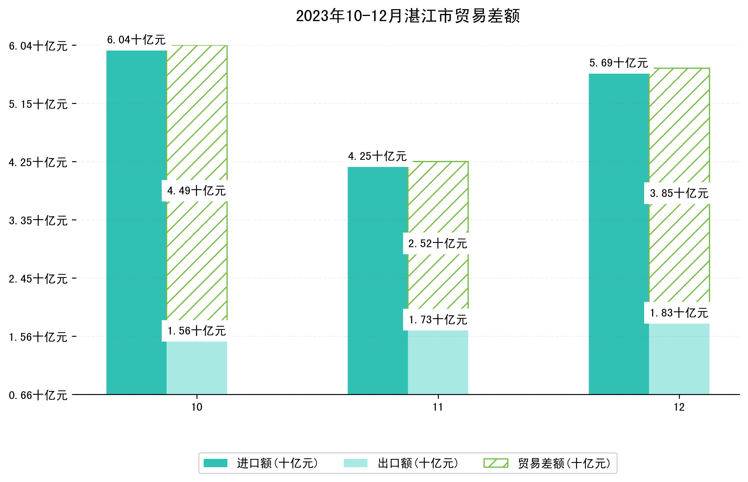2023年12月湛江市进出口总额及进出口差额统计分析