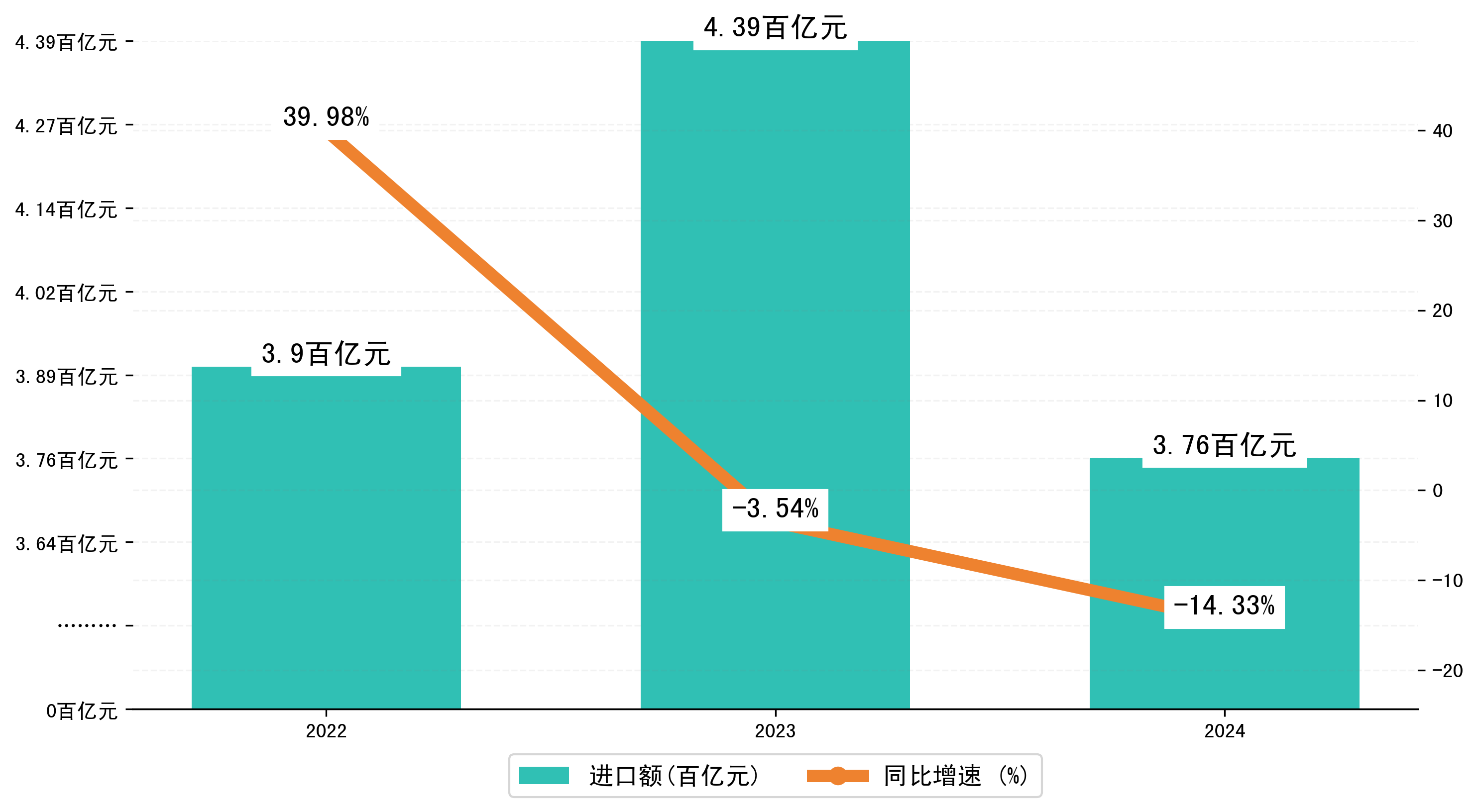 以人民币计,2024年1-11月湛江市进口额为376,3507.9198万元,相比上年同期减少了62,9451.5842万元,同比减少了-14.50%。