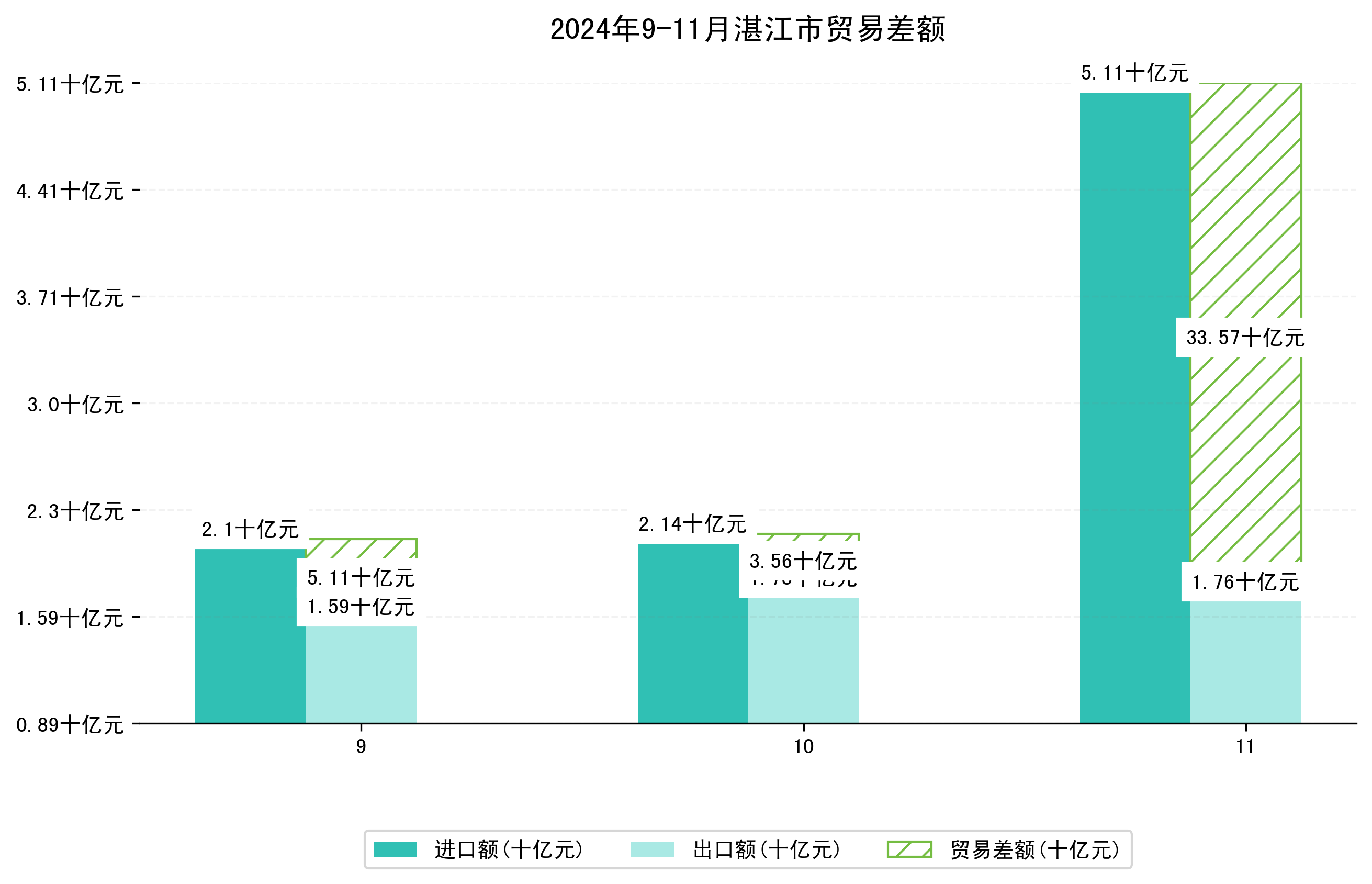 2024年11月湛江市进出口总额及进出口差额统计分析