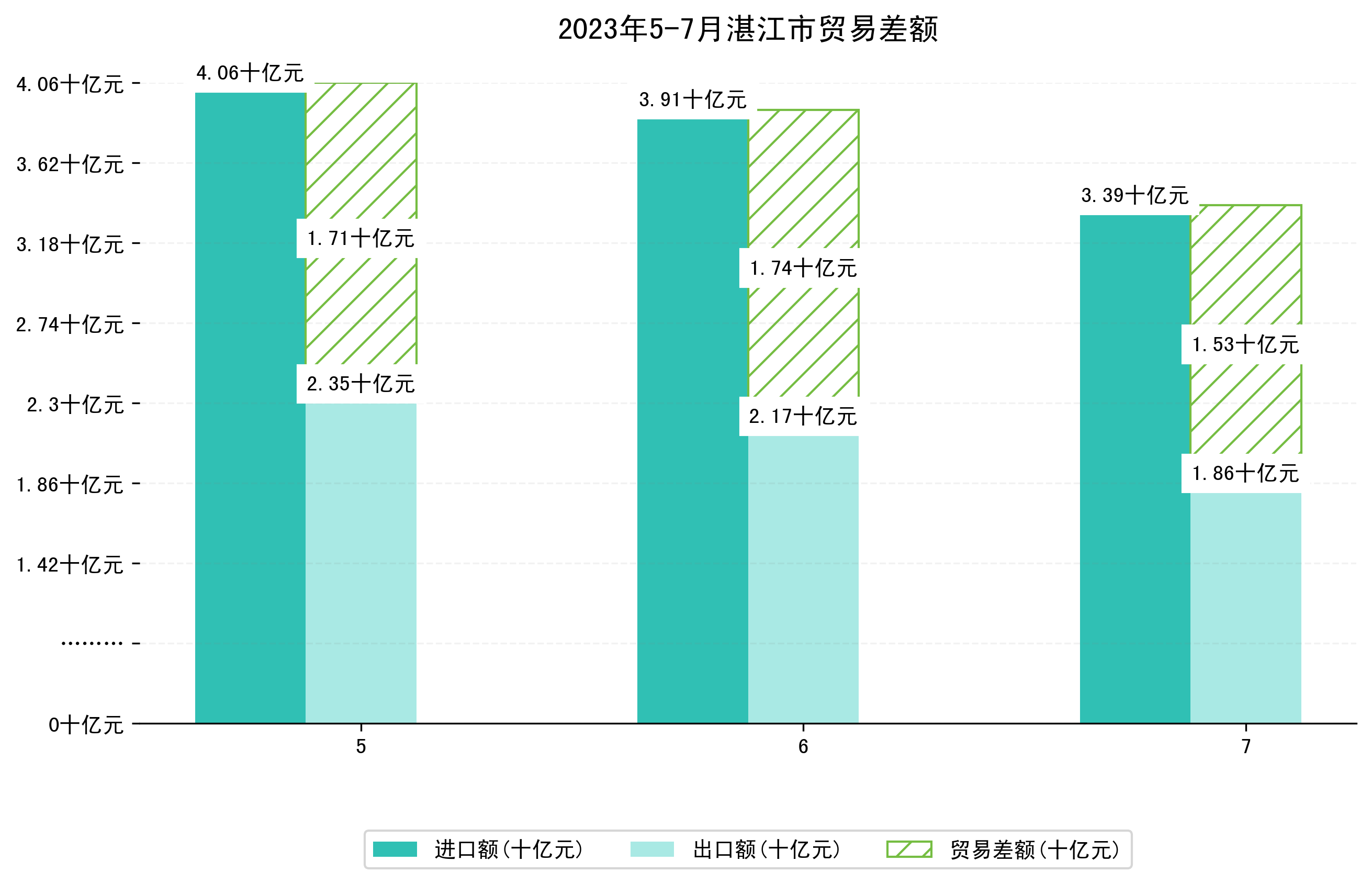 2023年7月湛江市进出口总额及进出口差额统计分析