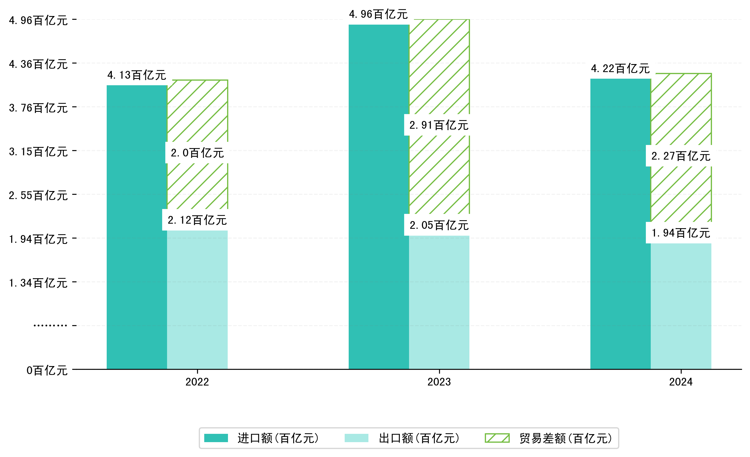 以人民币计,2024年1-12月湛江市贸易差额为227,3184,5671万元(贸易逆差),相比上年同期增加了63,7537,2354万元,同比增加-21.9%。
