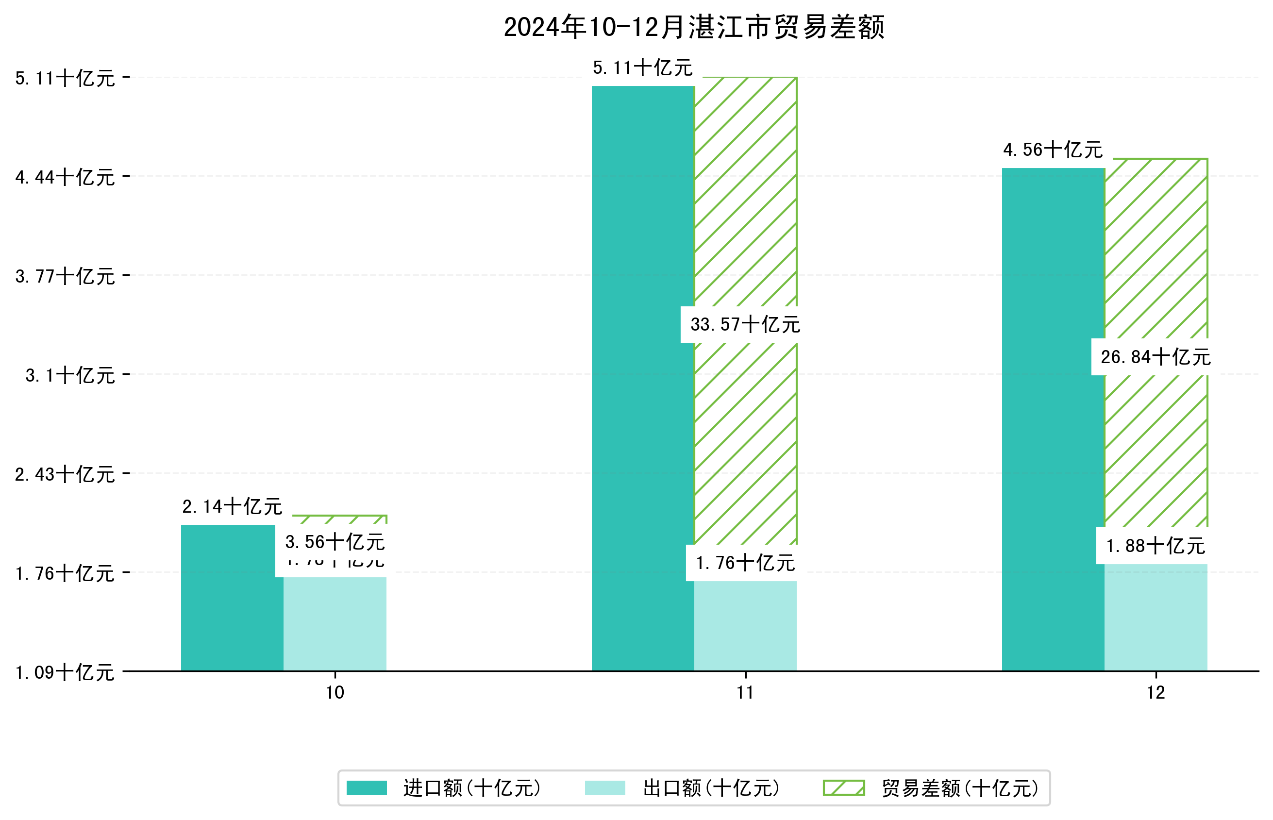 2024年12月湛江市进出口总额及进出口差额统计分析