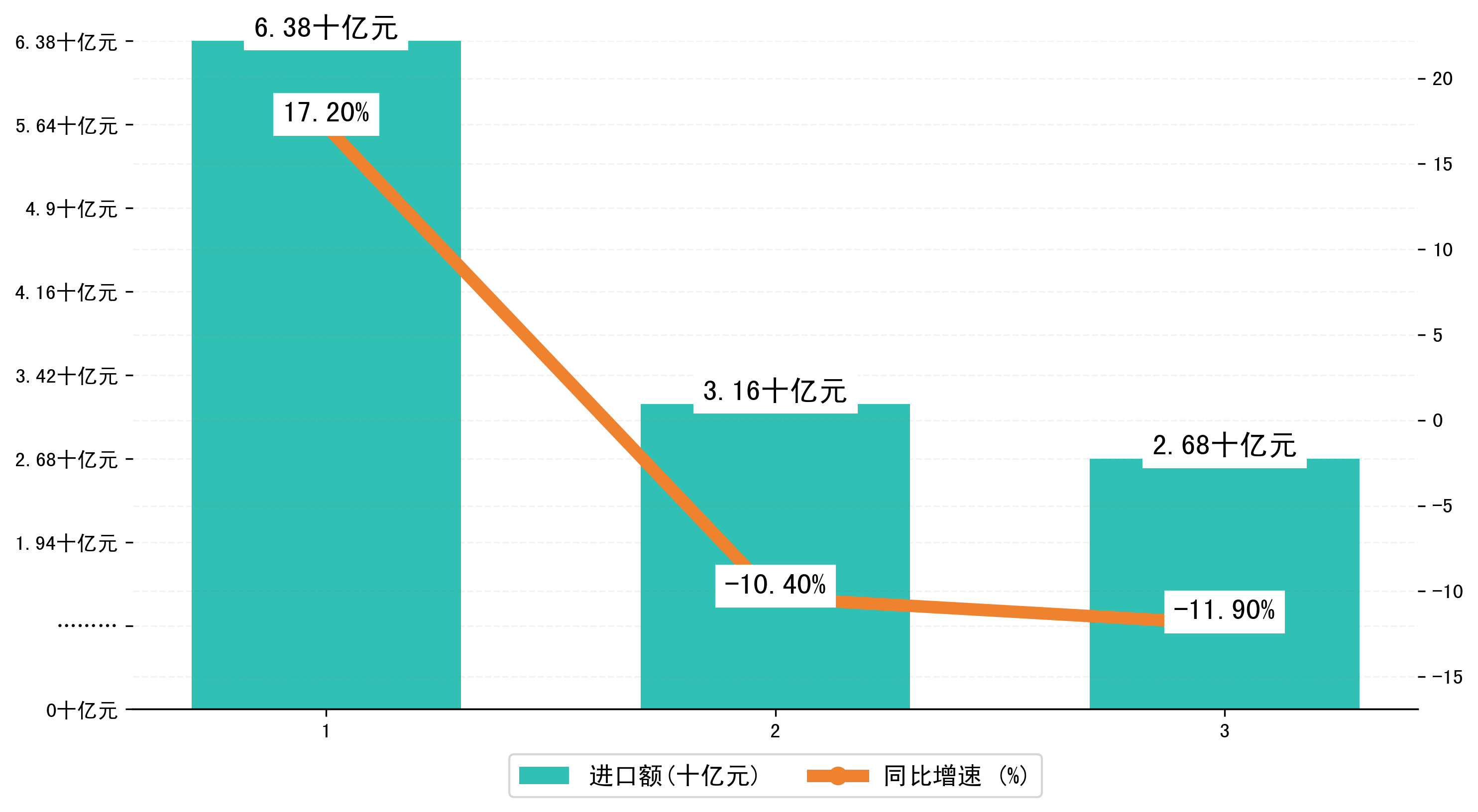 以人民币计,2025年3月湛江市贸易差额为9,1964,9915万元(贸易逆差),相比上月增加了10,6792,0271万元,即1,4796,0596万美元;相比上年同期增加了7,9707,5744万元,同比增加-46.43%。
