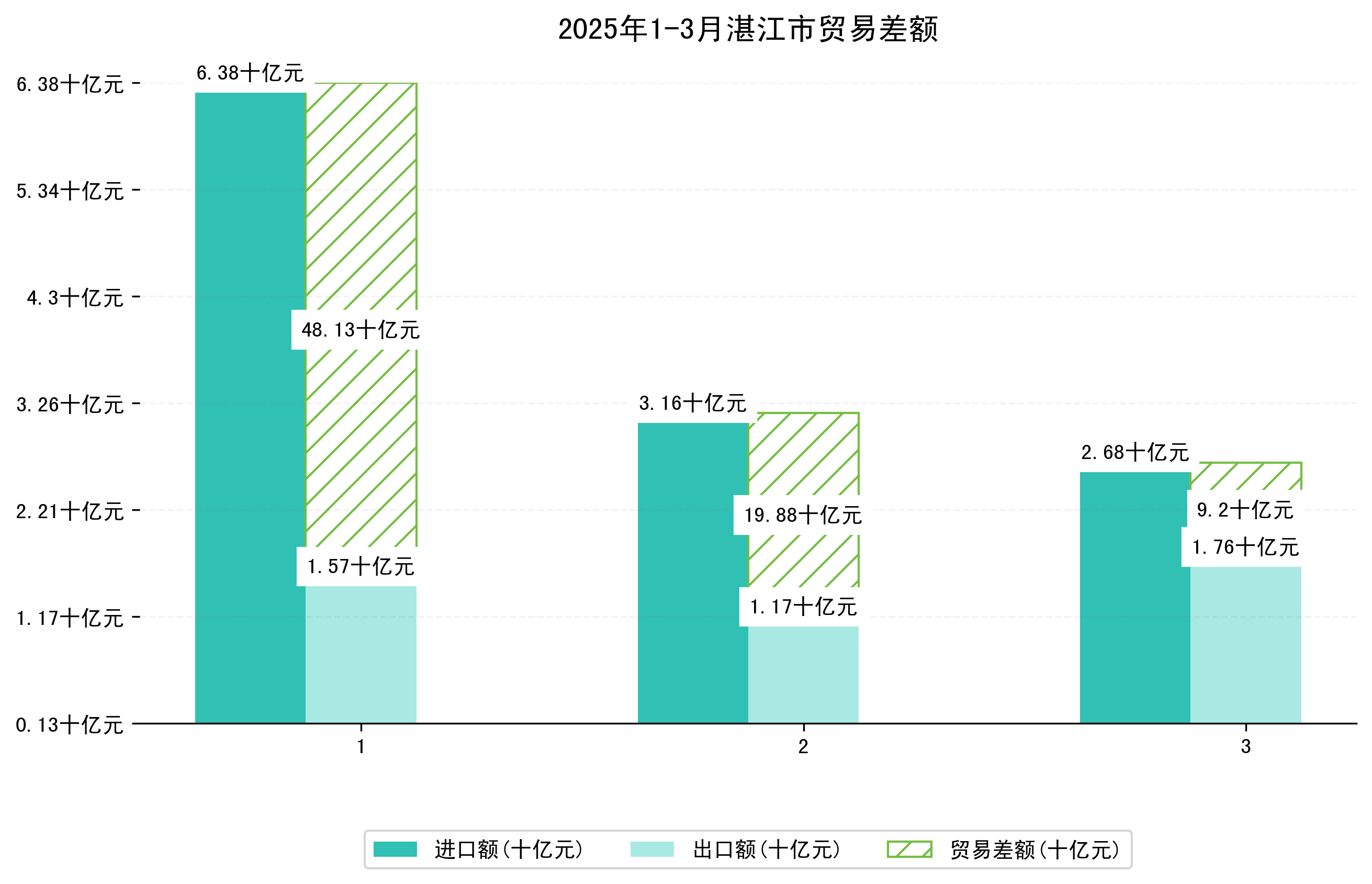 2025年3月湛江市进出口总额及进出口差额统计分析