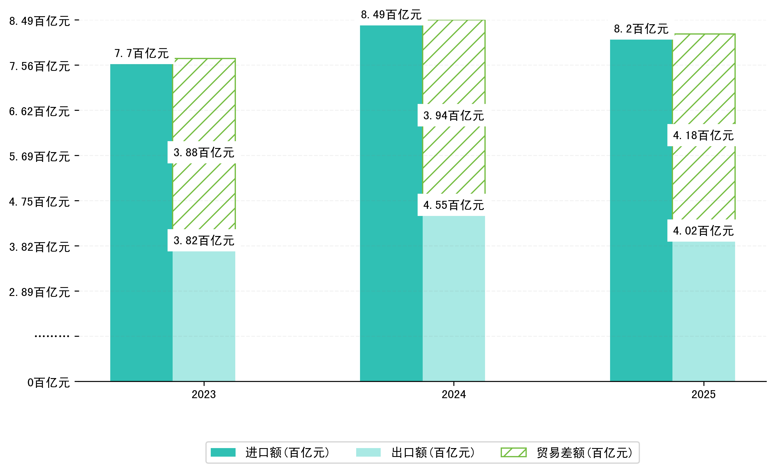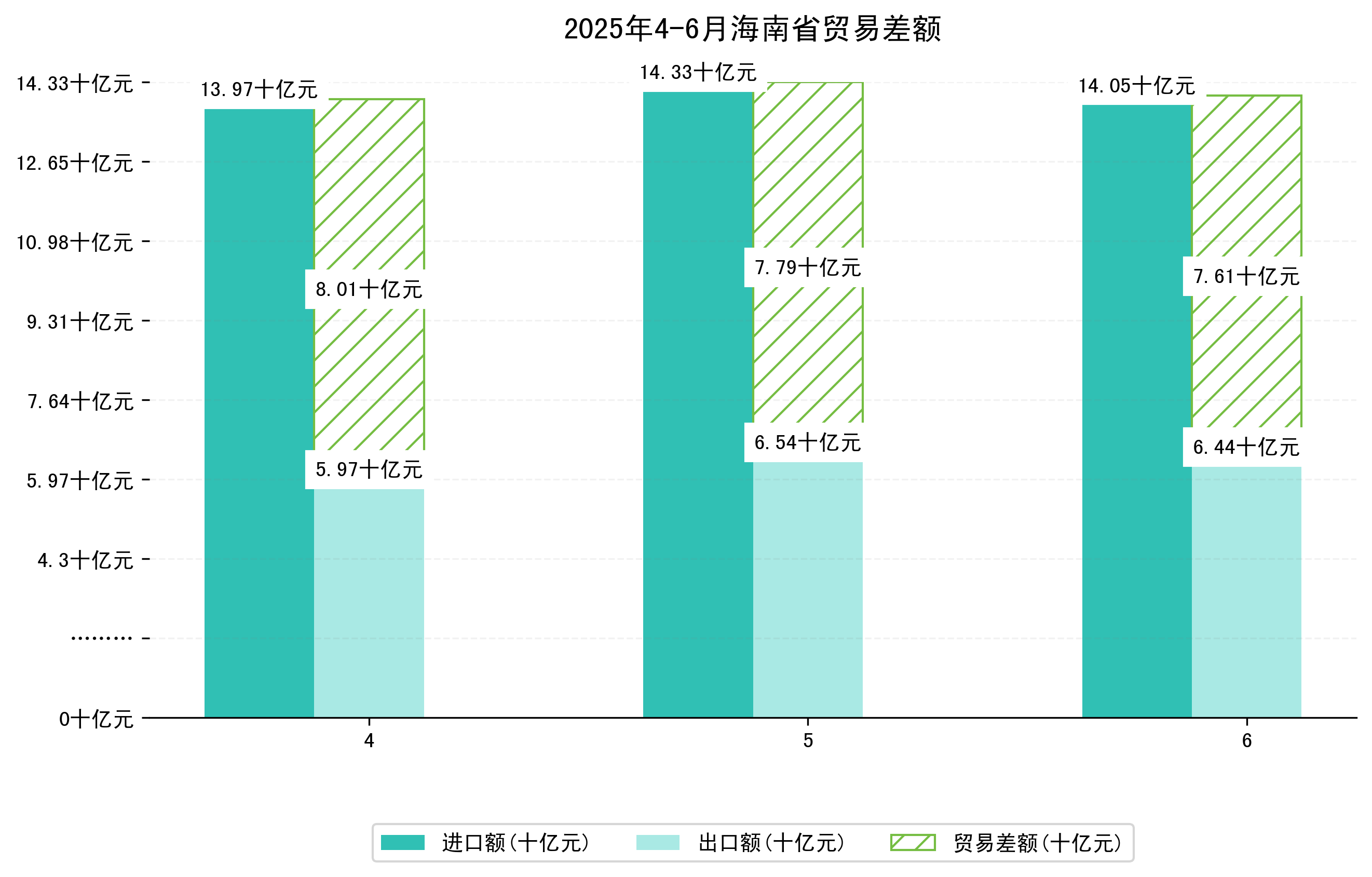 以人民币计,2025年6月海南省贸易差额为76,0702,7367万元(贸易逆差),相比上月增加了1,7858,8355万元,即2352,4034万美元;相比上年同期减少了21,5215,8885万元,同比减少39.45%。