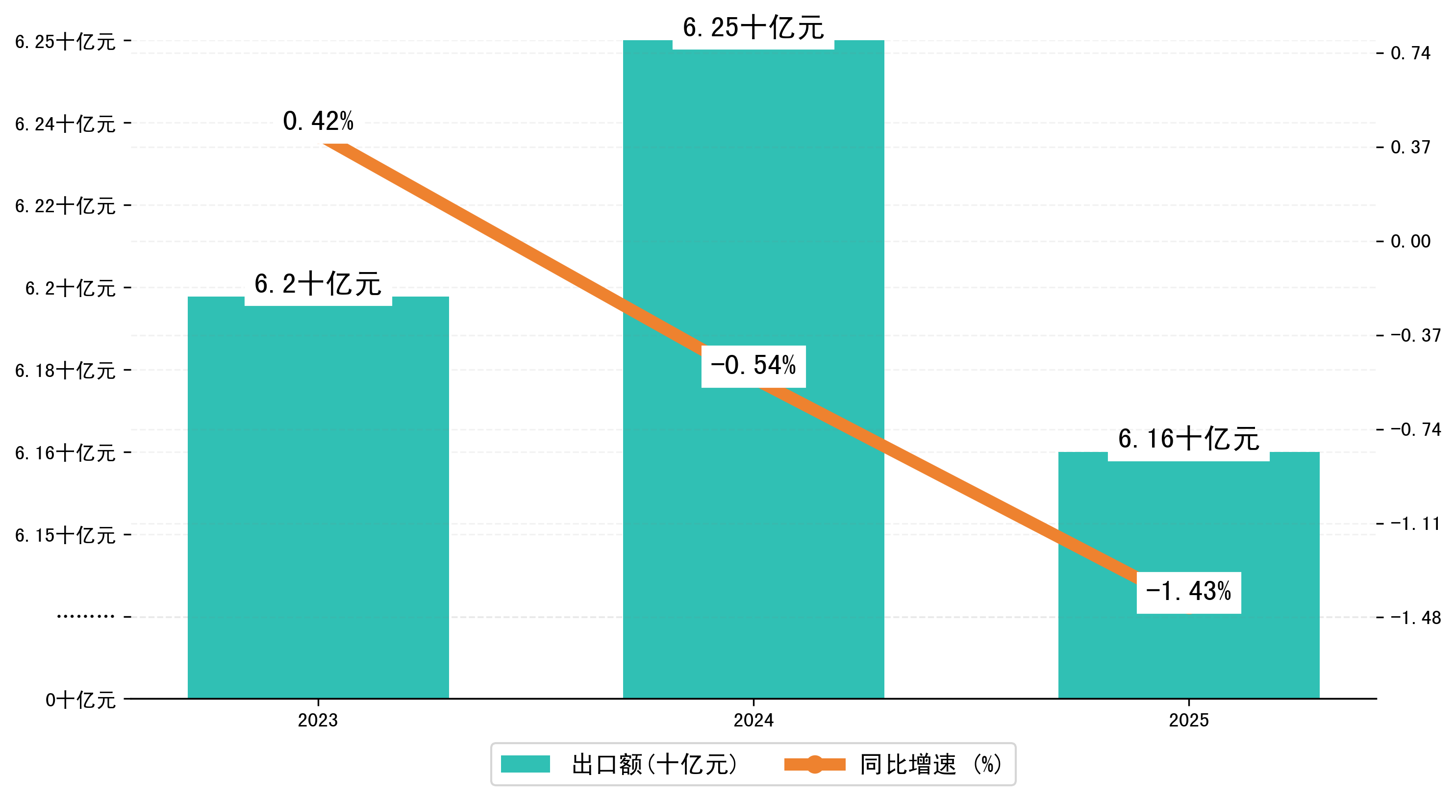 以人民币计,2025年1-4月湛江市出口额为61,6474.4791万元,相比上年同期减少了8918.1394万元,同比减少了-1.40%。