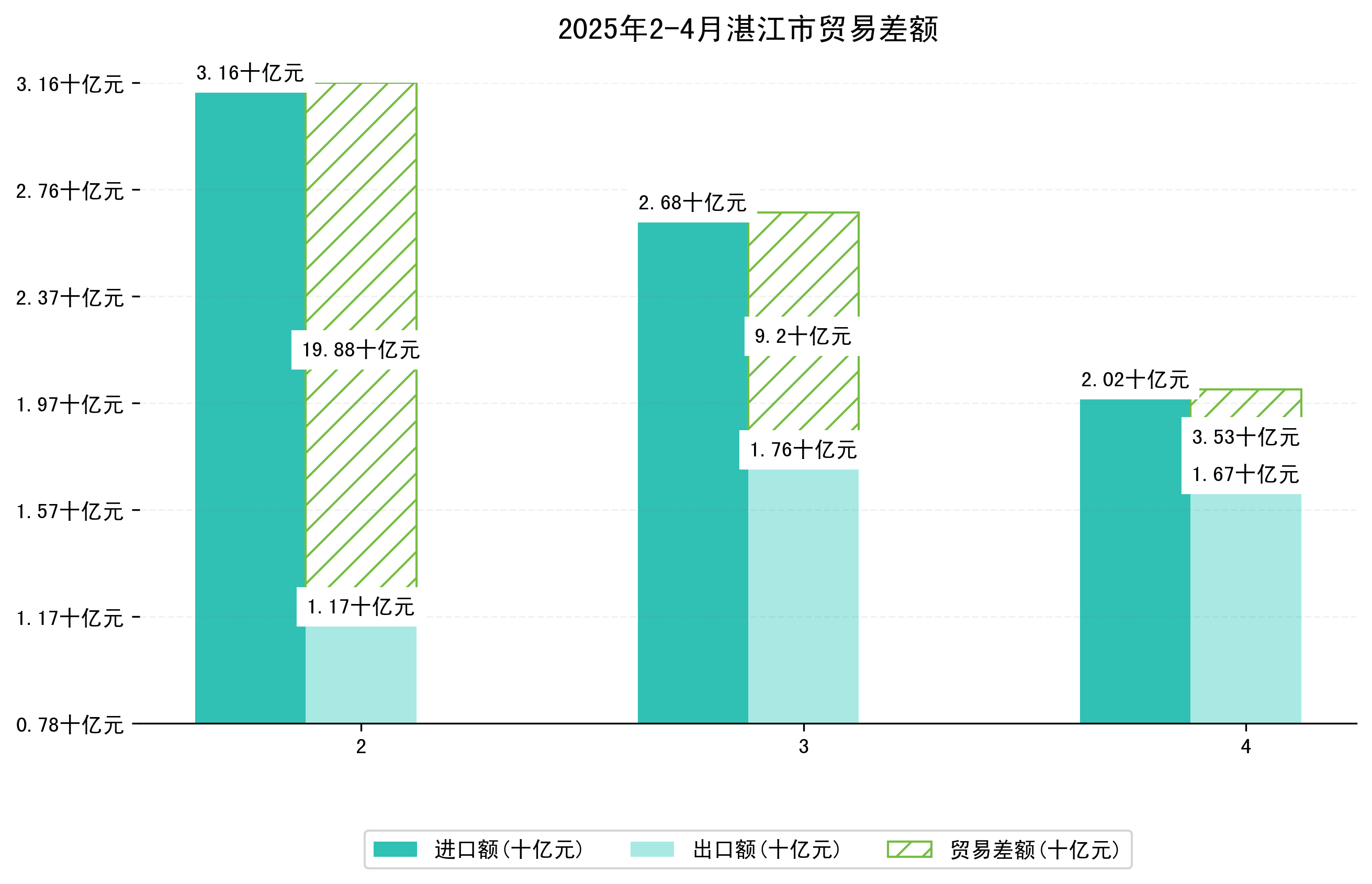 2025年4月湛江市进出口总额及进出口差额统计分析