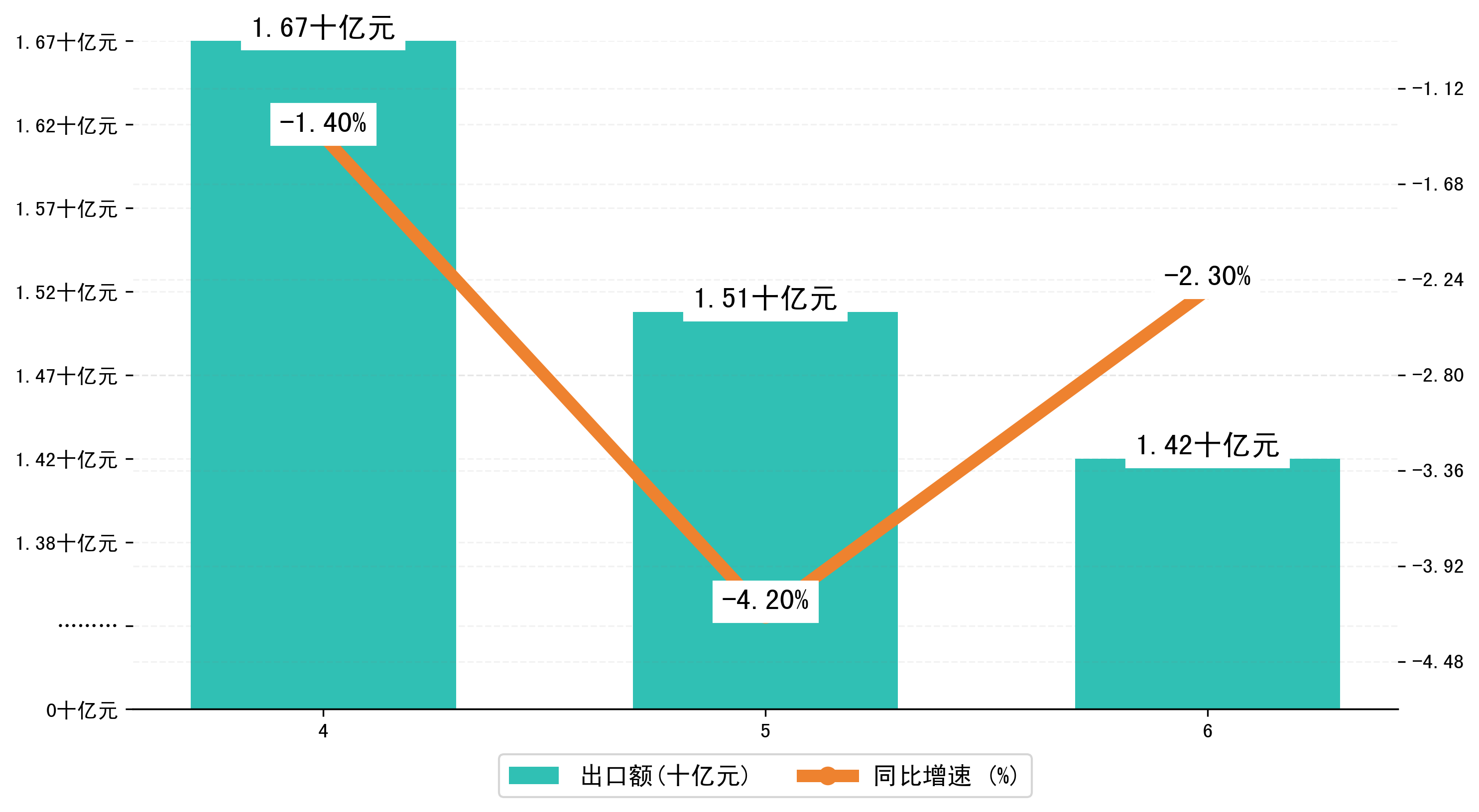 一、2025年6月湛江市单月出口总额及进出口差额统计分析