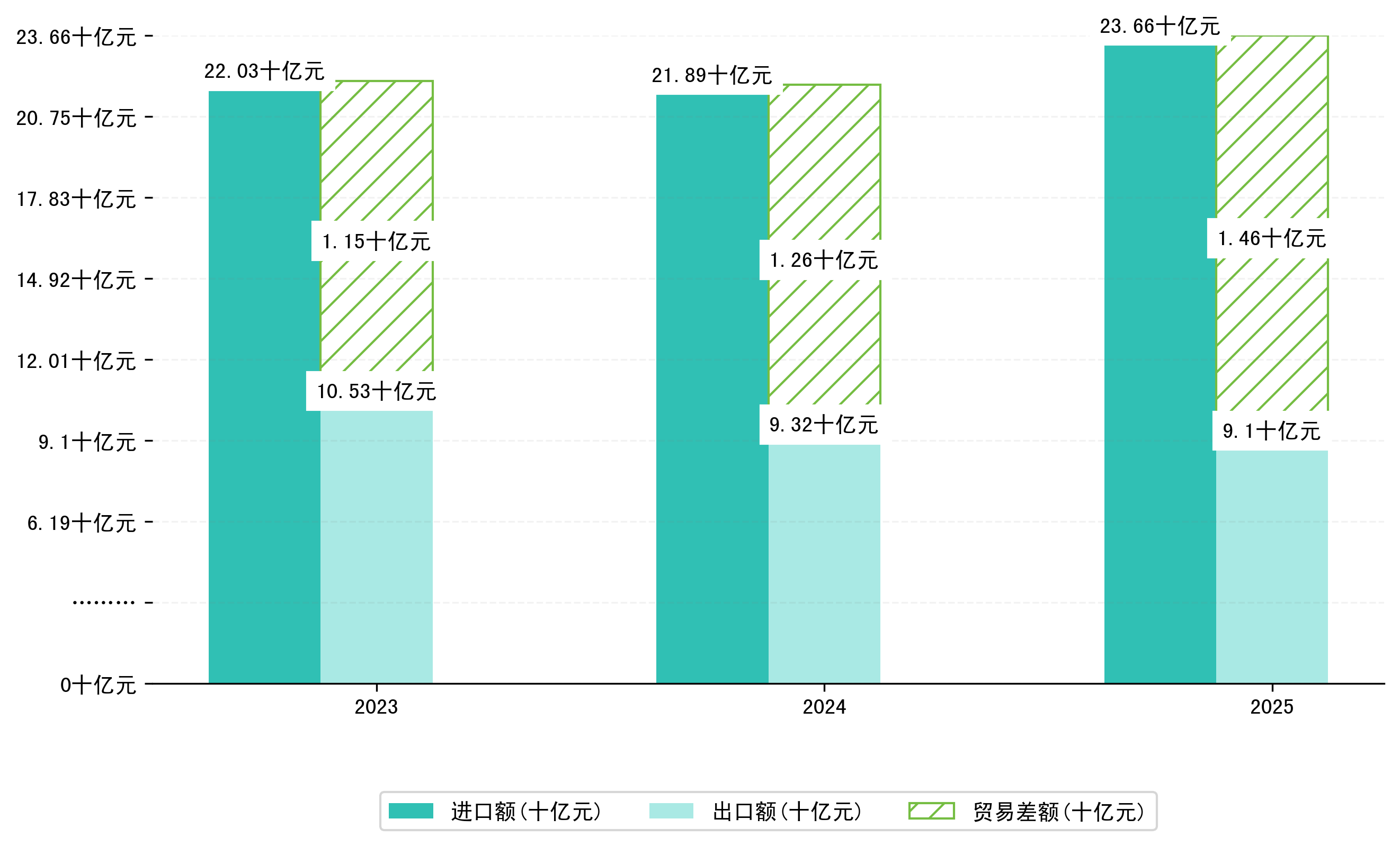 以美元计,2025年1-6月湛江市贸易差额为20,2469,6733万美元(贸易逆差),相比上年同期减少了2,5541,1966万美元,同比减少14.44%。